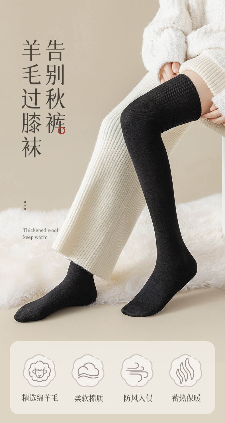 주지 양모 무릎 위 양말 여성용 땀 흡수 가을 겨울 두꺼운 보온 압박 종아리 양말 롱 튜브 jk 무릎 보호 양말