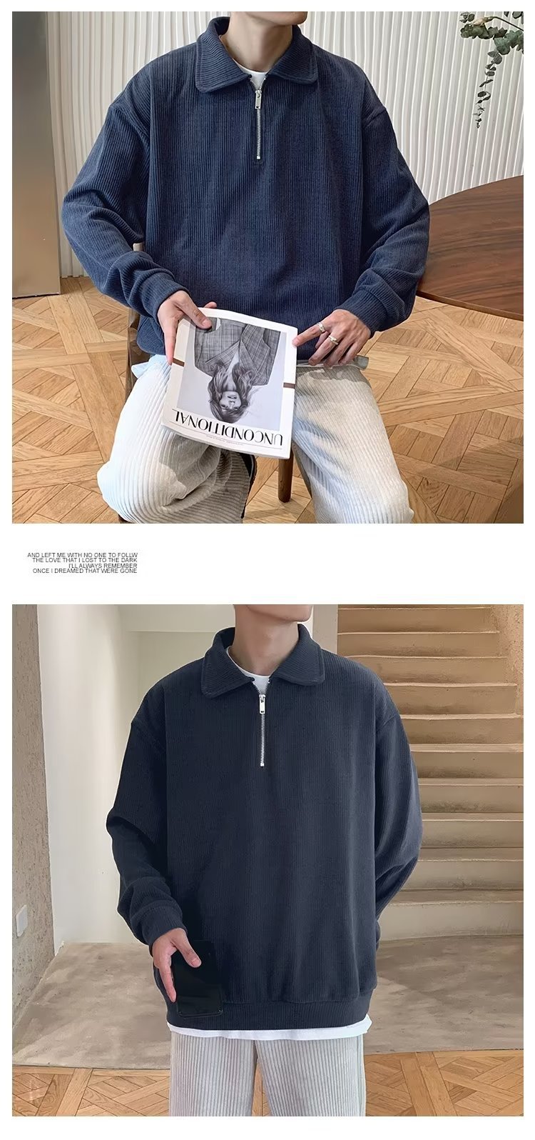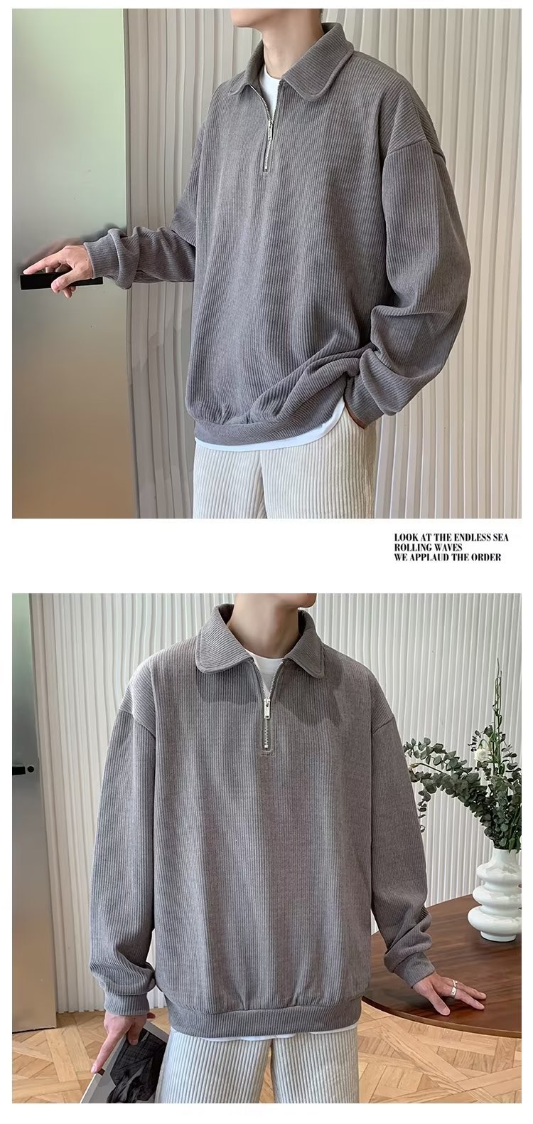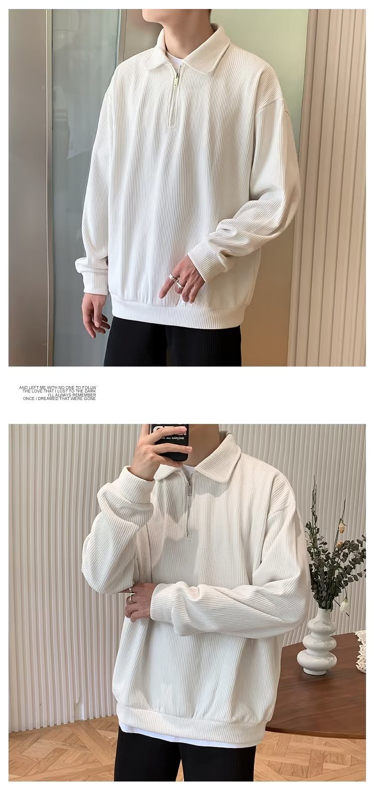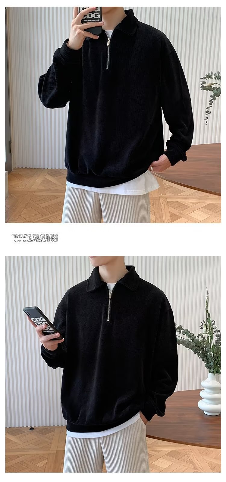 하프 지퍼 긴팔 티셔츠 남성용 봄과 가을 새로운 루즈한 라펠 탑 남성용 트렌디 브랜드 캐주얼 폴로 칼라 스웨터스토어 가기