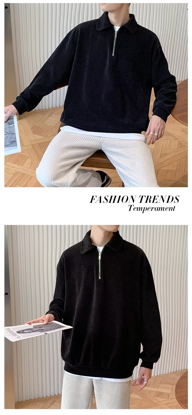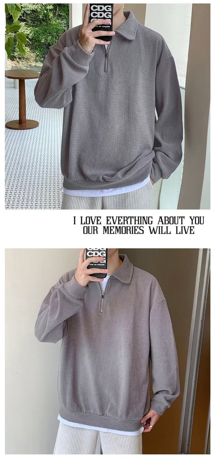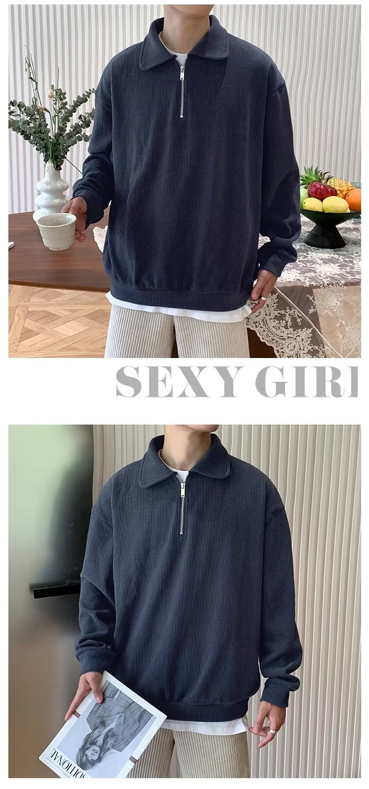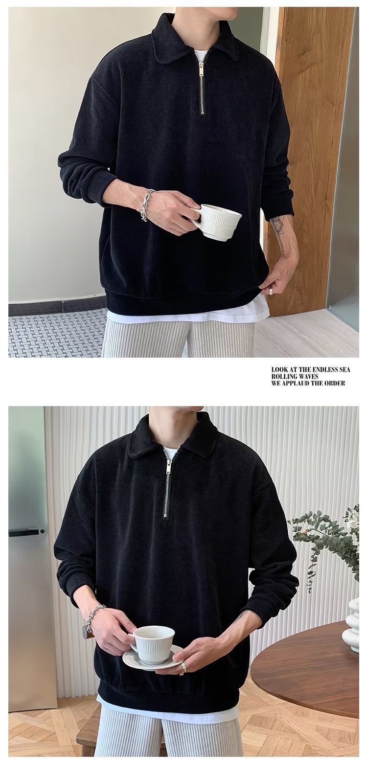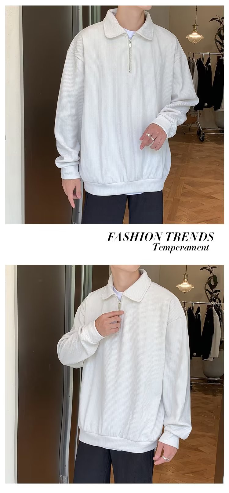 하프 지퍼 긴팔 티셔츠 남성용 봄과 가을 새로운 루즈한 라펠 탑 남성용 트렌디 브랜드 캐주얼 폴로 칼라 스웨터스토어 가기