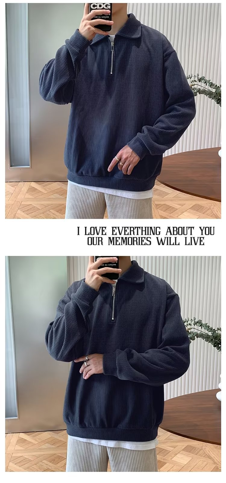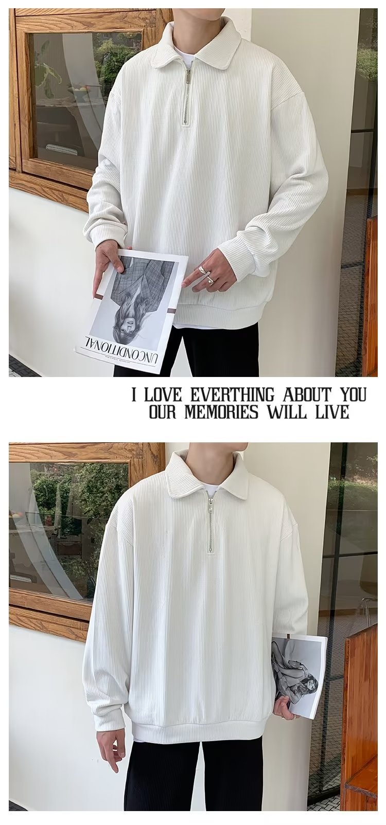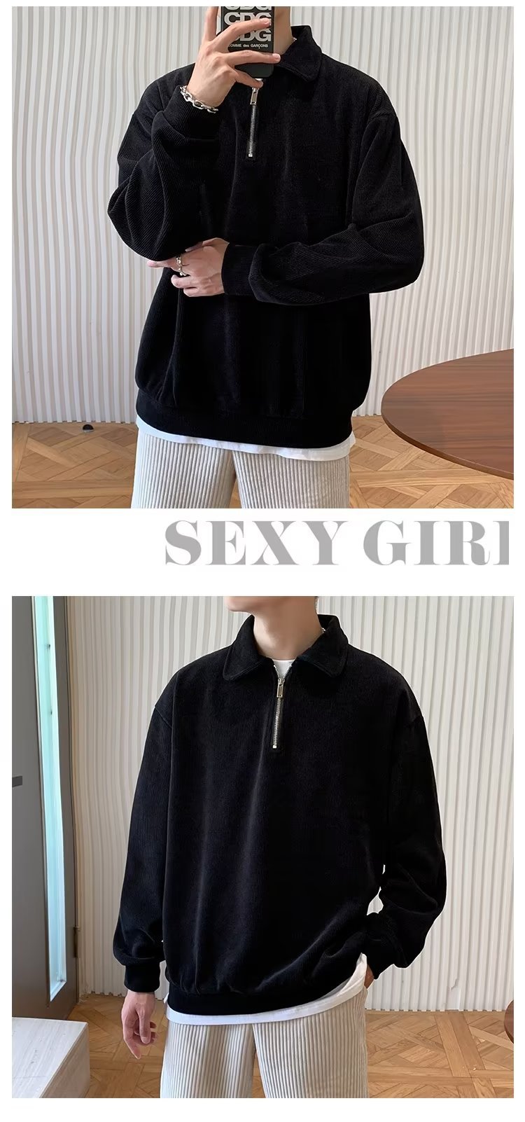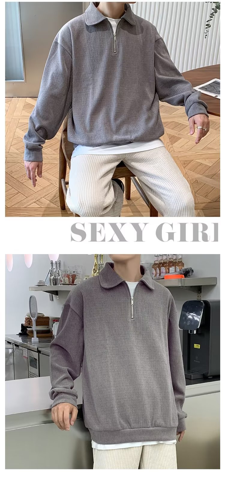 하프 지퍼 긴팔 티셔츠 남성용 봄과 가을 새로운 루즈한 라펠 탑 남성용 트렌디 브랜드 캐주얼 폴로 칼라 스웨터스토어 가기