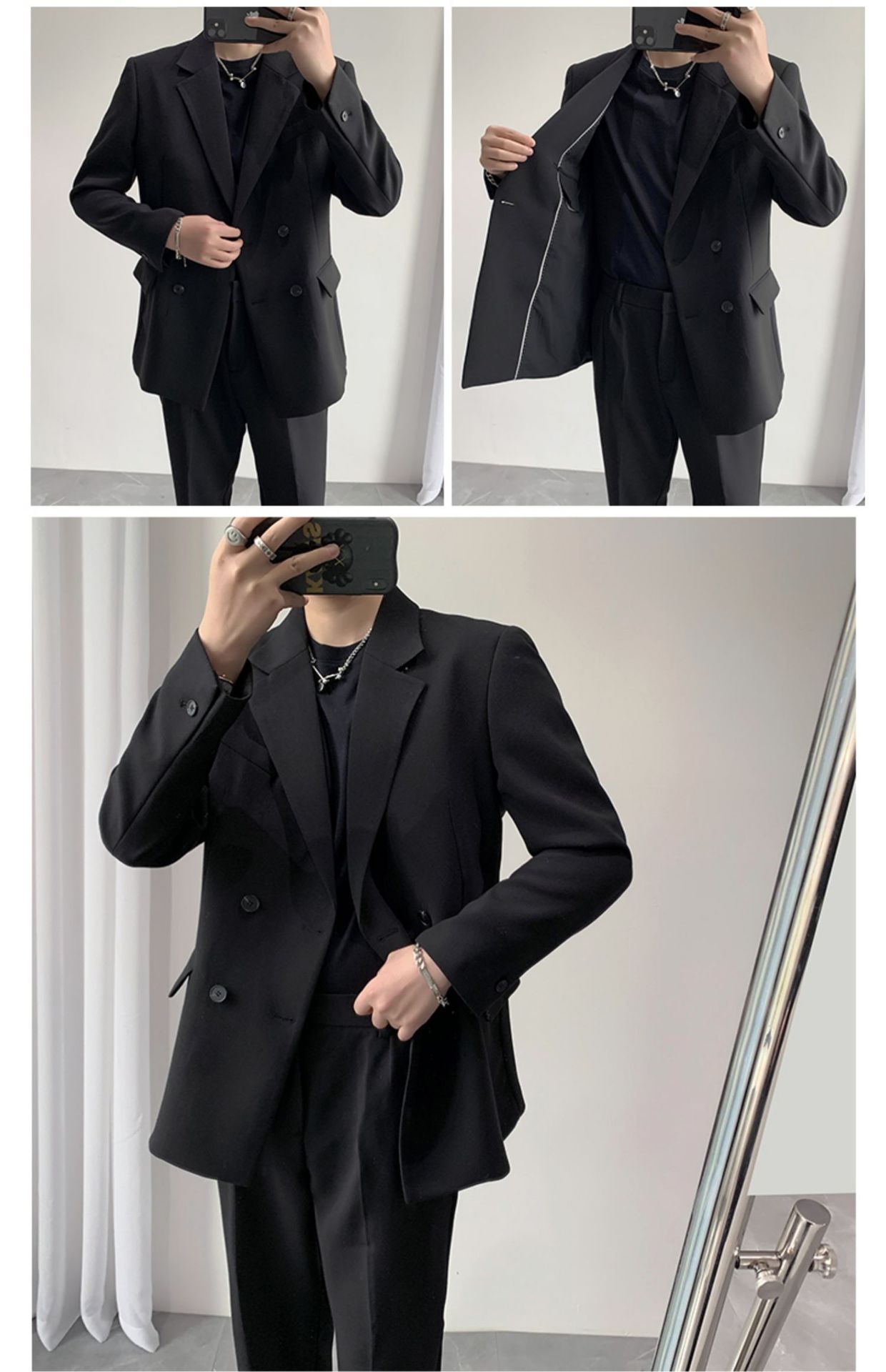 캐주얼 세트 재킷 남자의 봄과 가을 dk 유니폼 탑 한국어 느슨한 유행 복고풍 싱글 세트 탑 유행스토어 가기