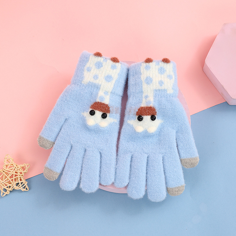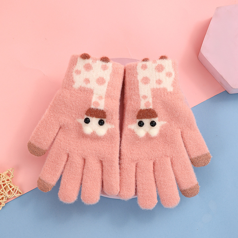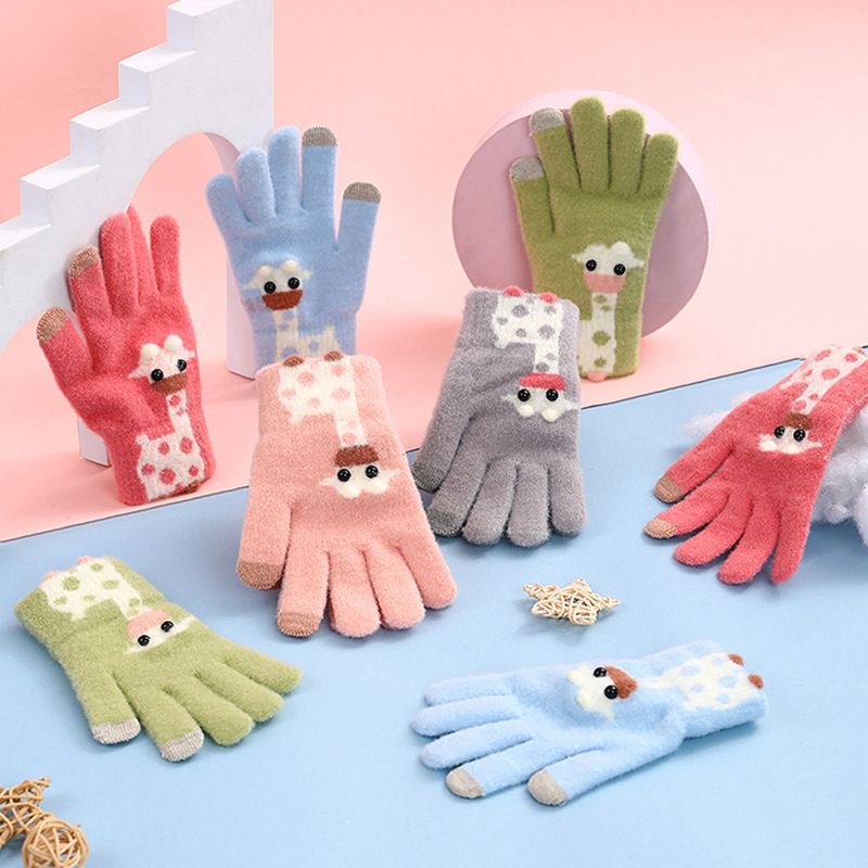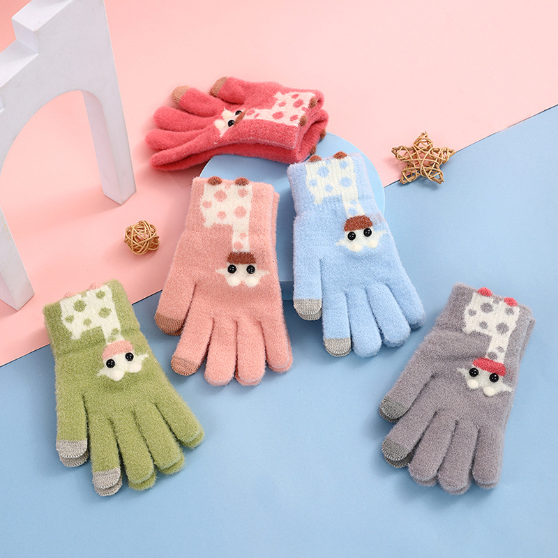 어린이용 플러시 보온 장갑, 여아, 남아, 귀여운 아기용 다섯 손가락 두꺼운 만화 캐릭터 손가락별 터치스크린 장갑