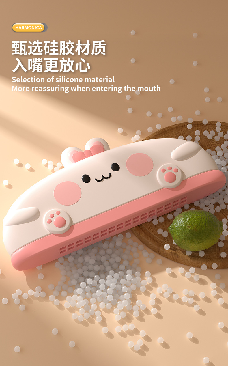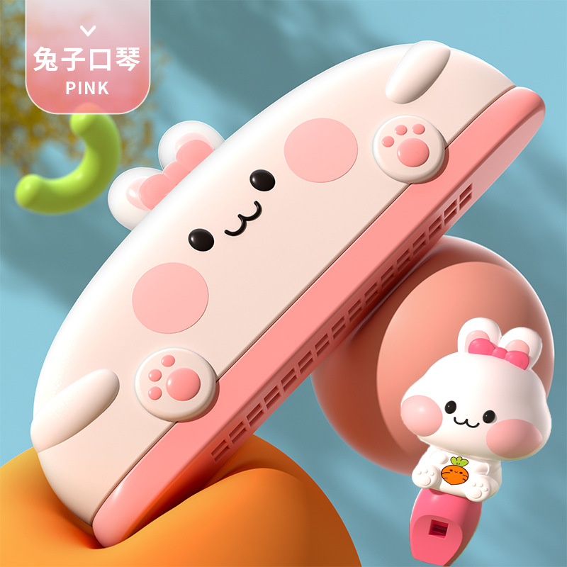 • 기프트 박스 [32 홀 고품질] 귀여운 토끼 하모니카 + 호루라기