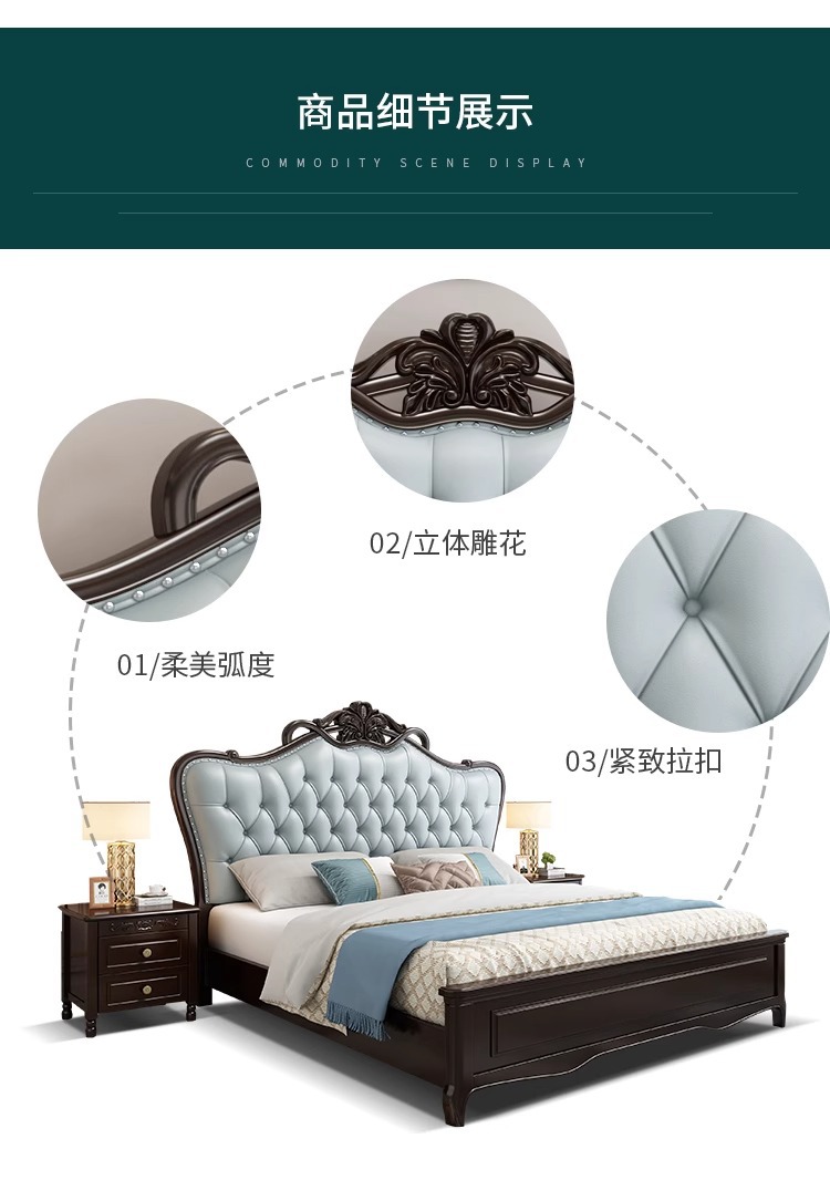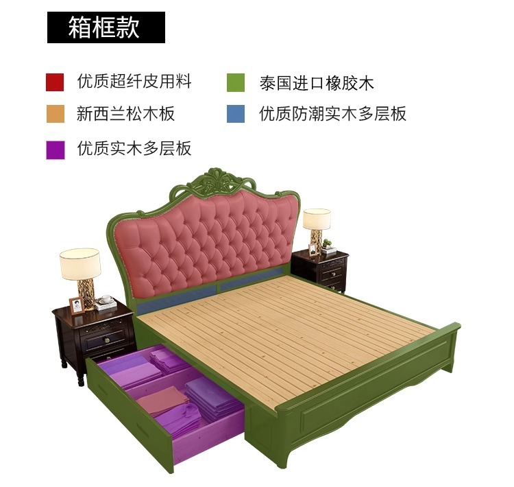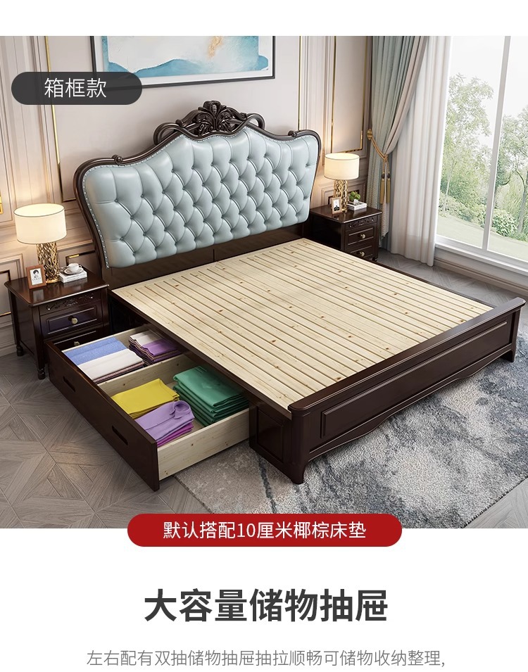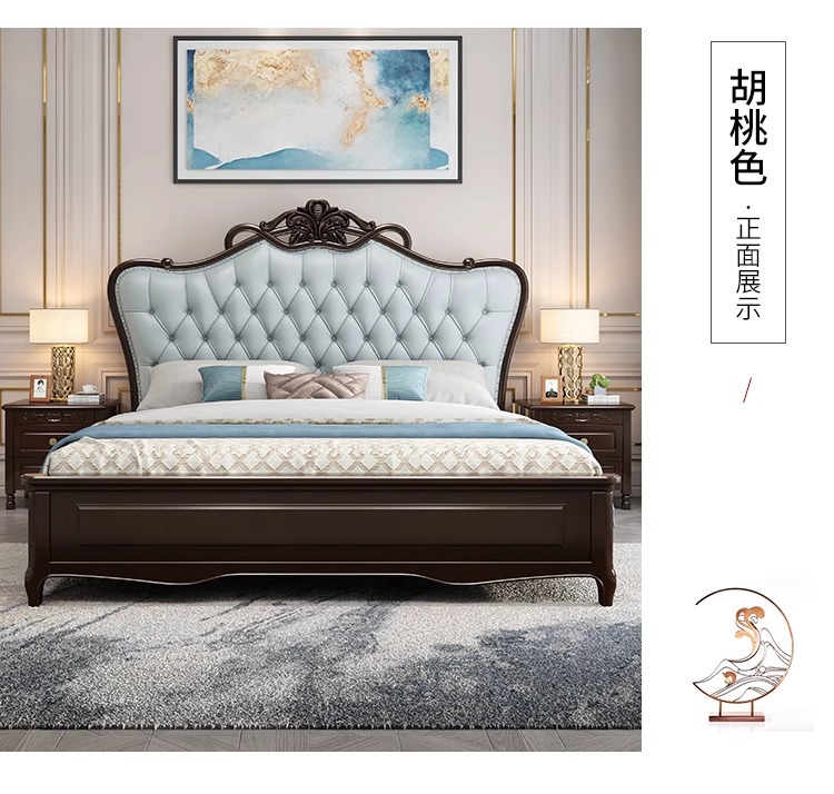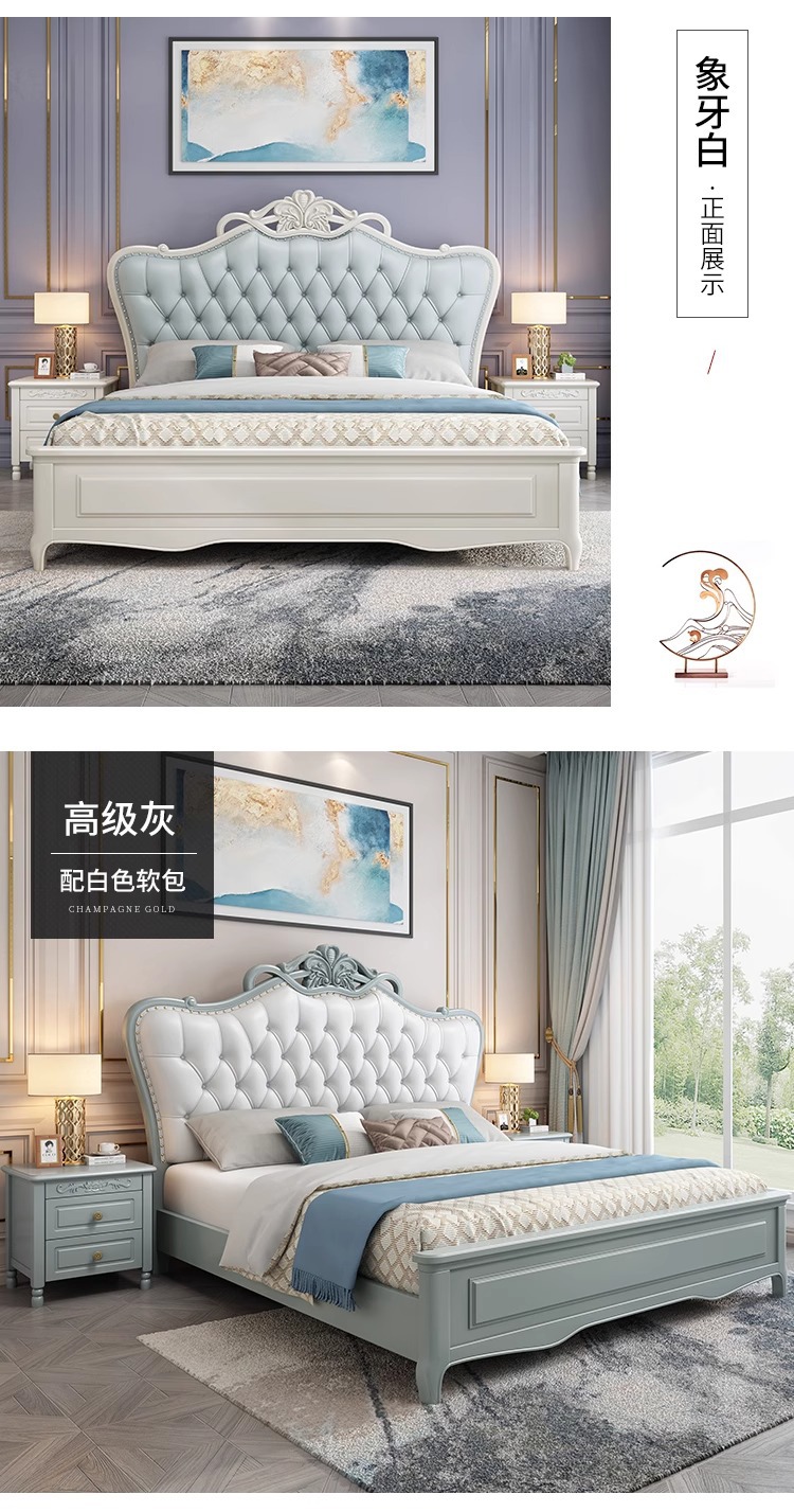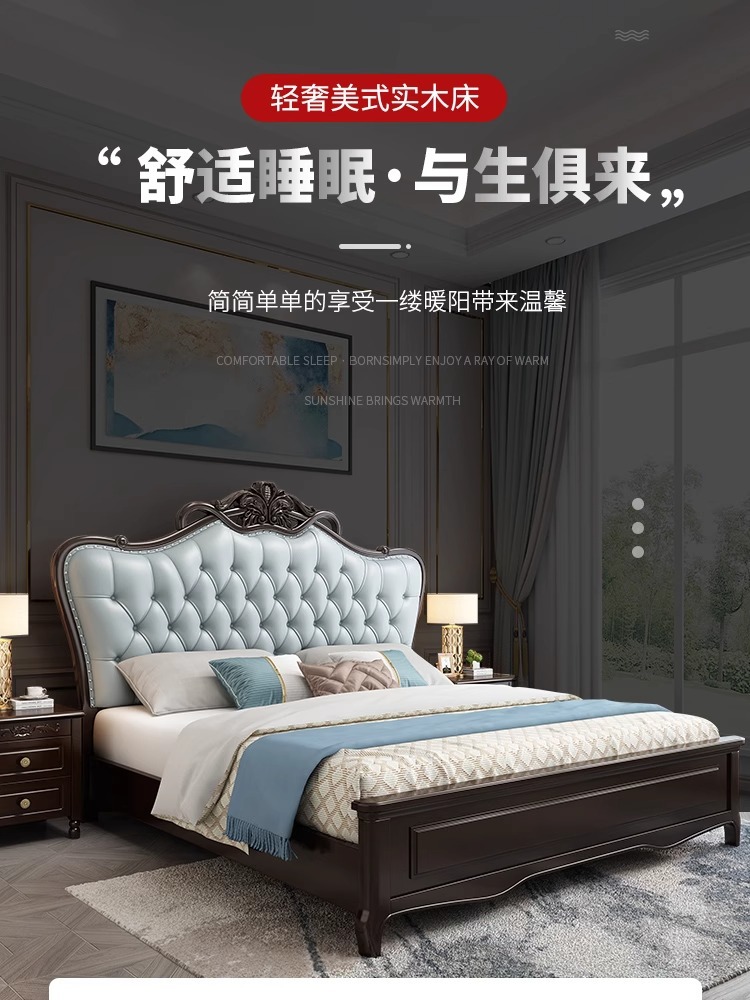 미국식 가벼운 고급 단단한 나무 침대 마스터 침실 더블 침대 1.8 모던 1.5 미터 프린세스 오크 유럽식 대형 침대 소프트 팩 웨딩 침대