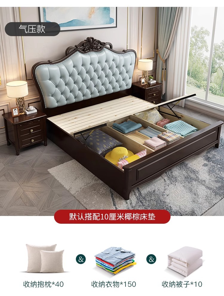 미국식 가벼운 고급 단단한 나무 침대 마스터 침실 더블 침대 1.8 모던 1.5 미터 프린세스 오크 유럽식 대형 침대 소프트 팩 웨딩 침대스토어 가기