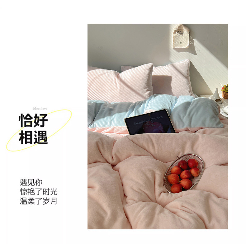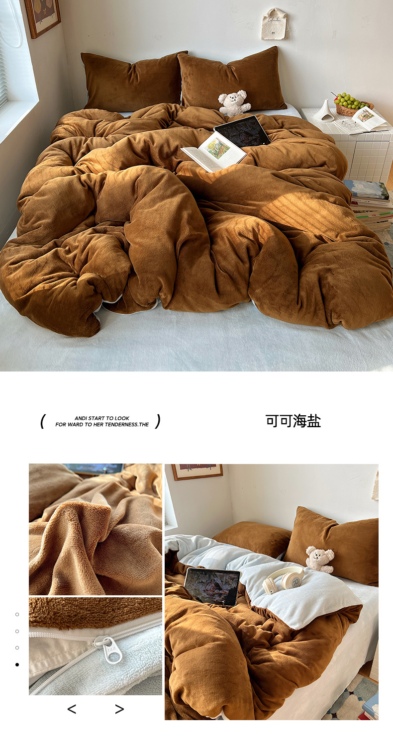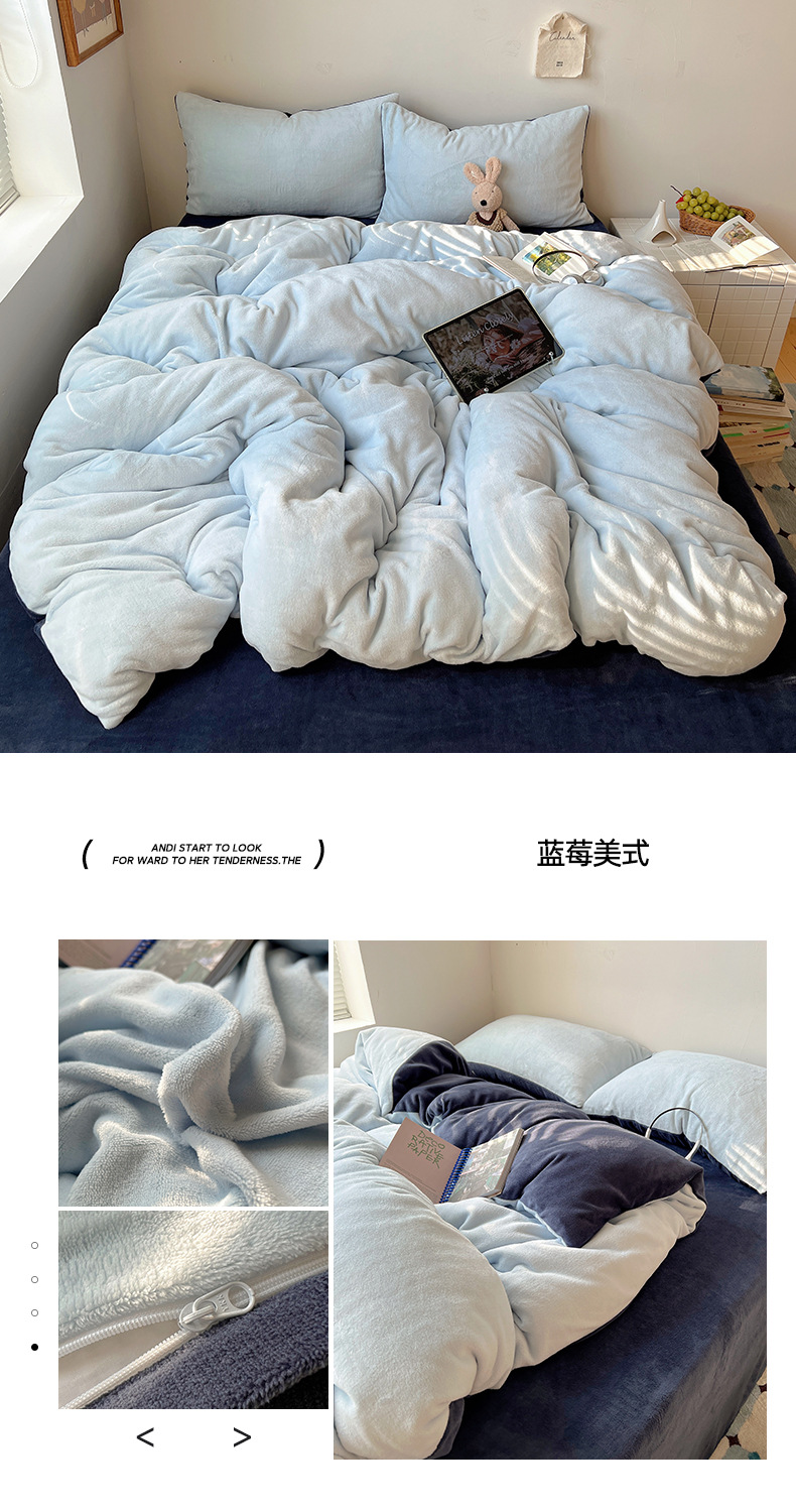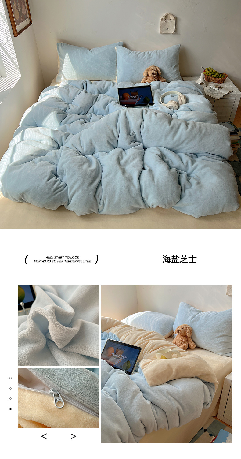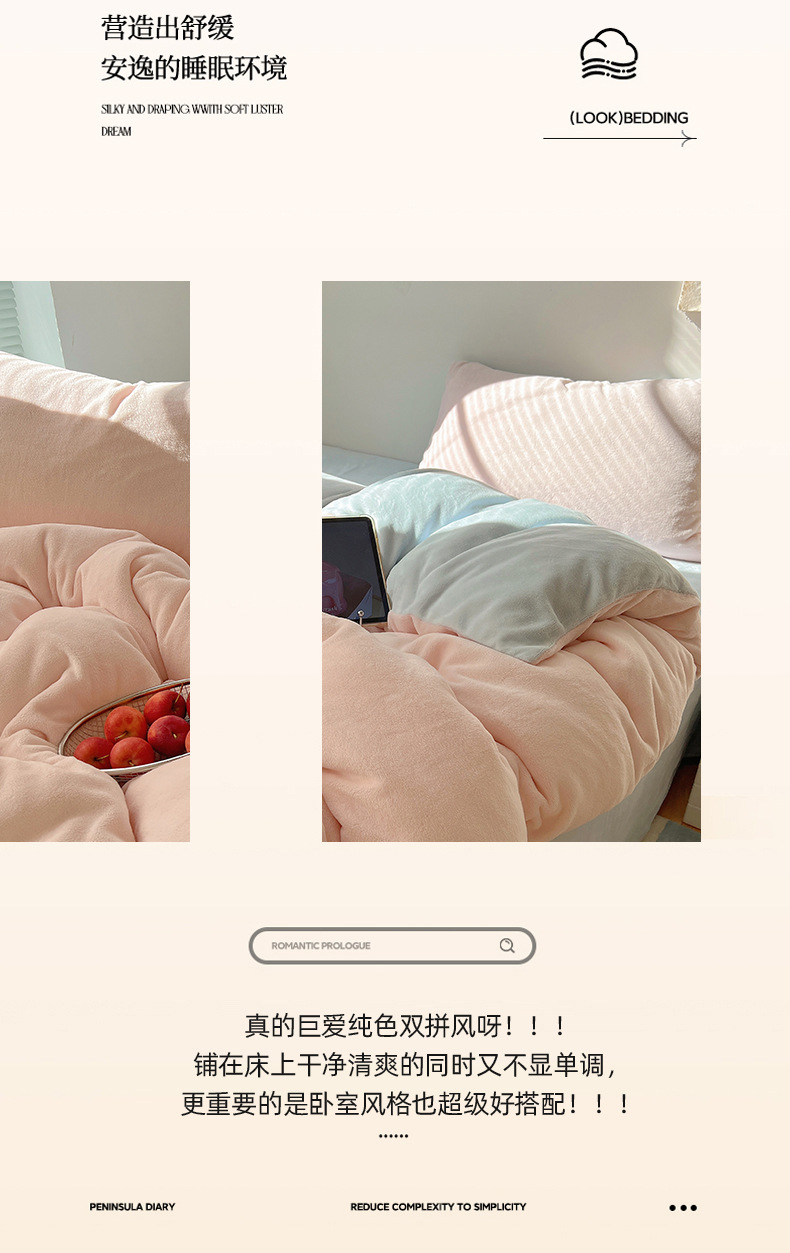 Ins 블로거 스타일 솔리드 컬러 혼합 A급 밀크 벨벳 4종 세트 겨울 따뜻한 침대 시트 세트 난퉁 홈 텍스타일 4종 침대 세트스토어 가기