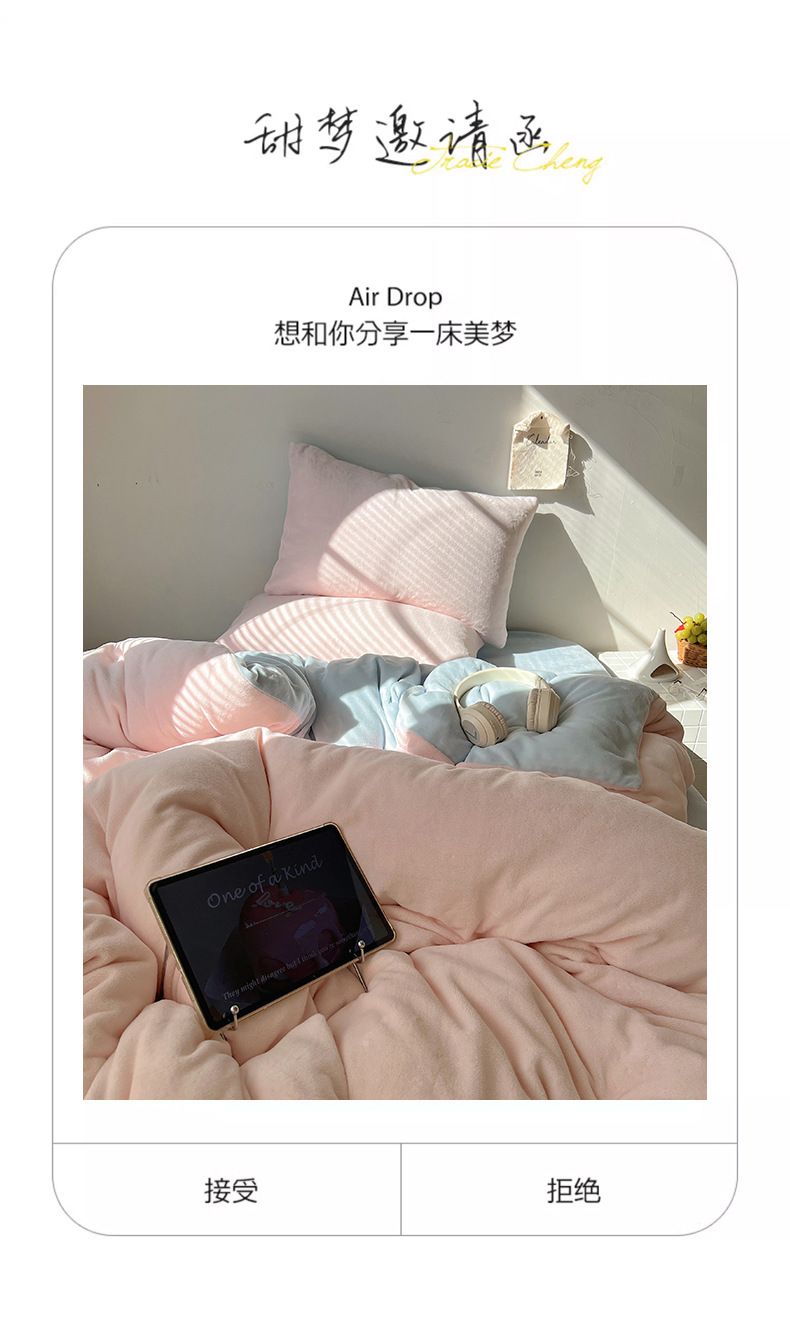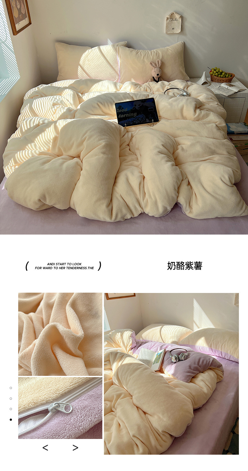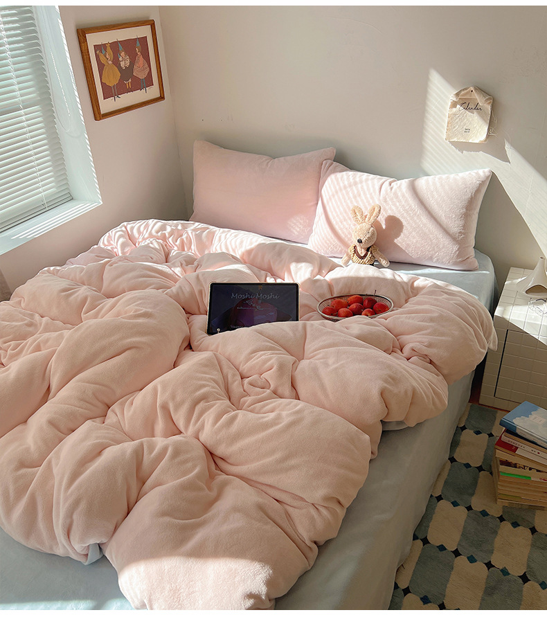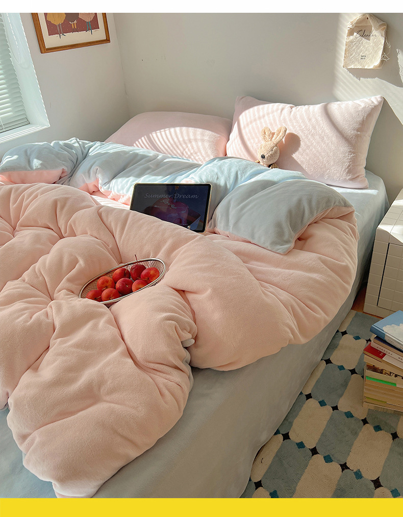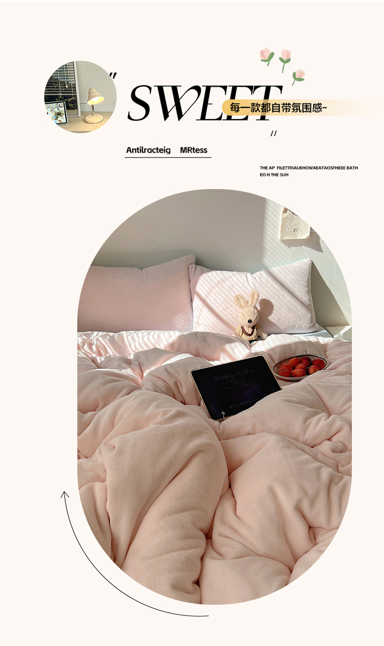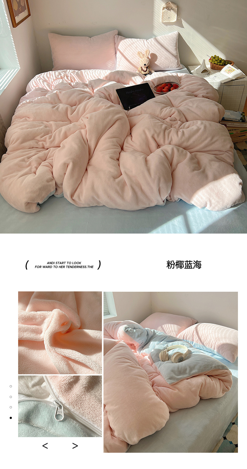 Ins 블로거 스타일 솔리드 컬러 혼합 A급 밀크 벨벳 4종 세트 겨울 따뜻한 침대 시트 세트 난퉁 홈 텍스타일 4종 침대 세트스토어 가기