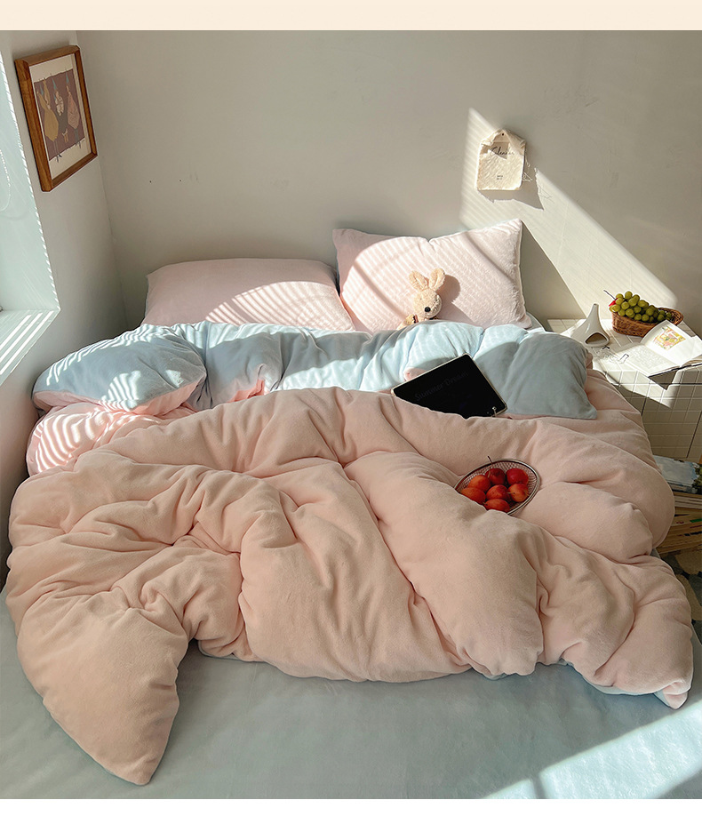 Ins 블로거 스타일 솔리드 컬러 혼합 A급 밀크 벨벳 4종 세트 겨울 따뜻한 침대 시트 세트 난퉁 홈 텍스타일 4종 침대 세트