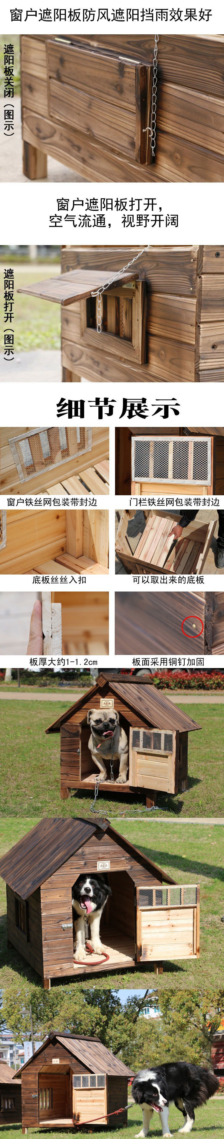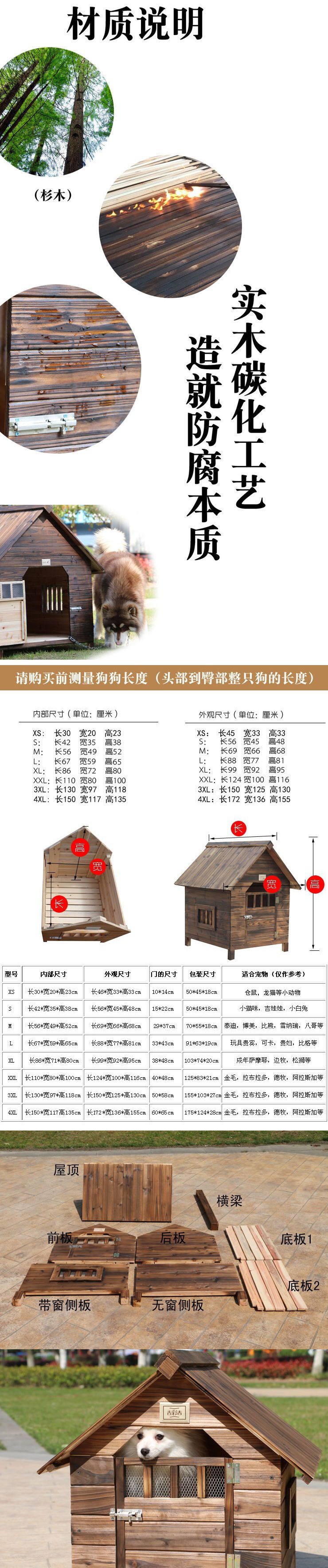 개 창고 야외 방수 농촌 야외 개집 실내 개 코티지 야드 개집 단단한 나무 탄화스토어 가기