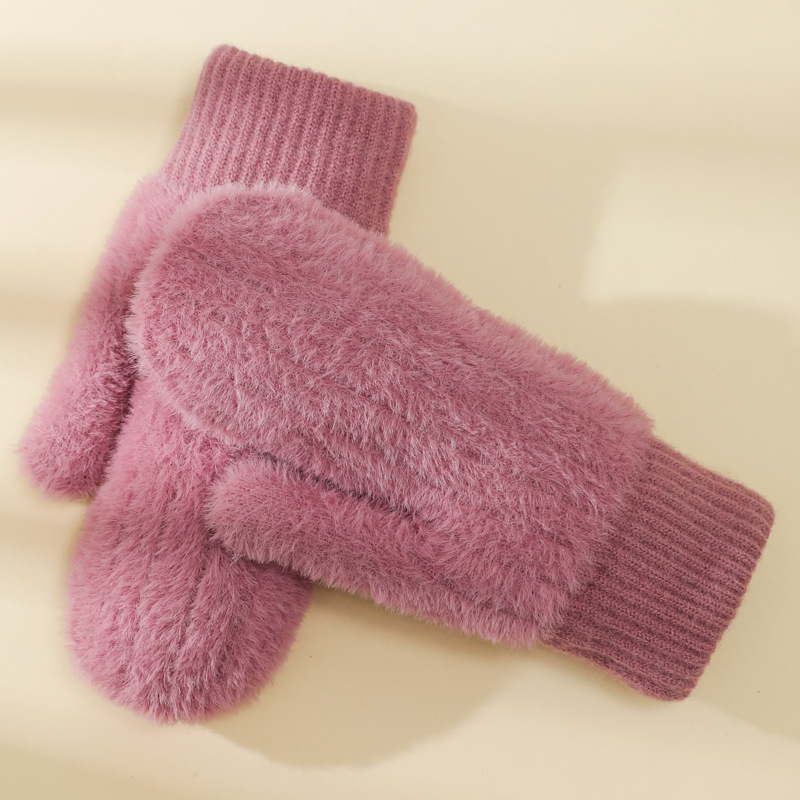 장갑 여자의 겨울 귀여운 학생 따뜻한 감기 방지 자전거 방 밍크 머리 한국 스타일 기모 두꺼운 전체 커버 손가락 장갑