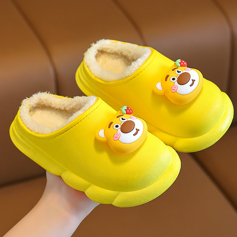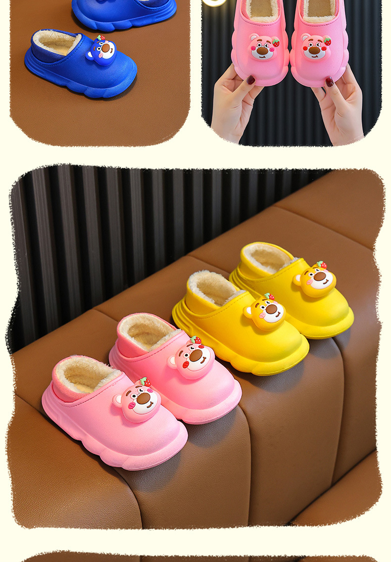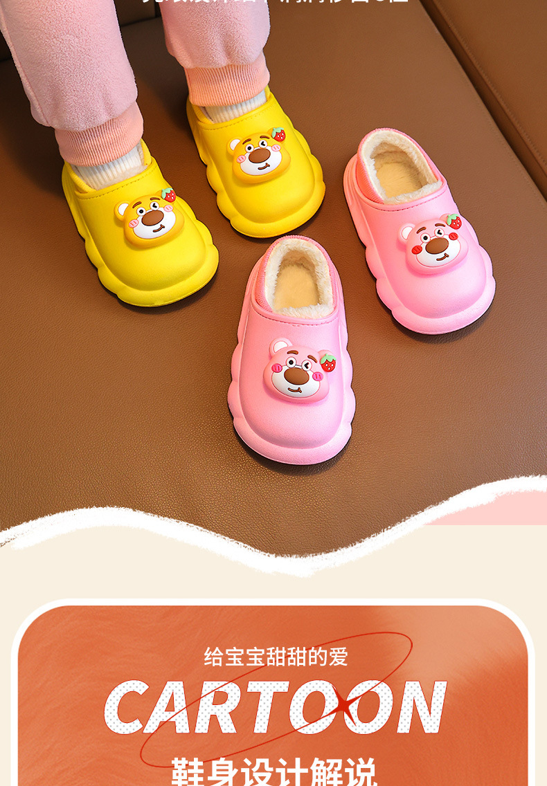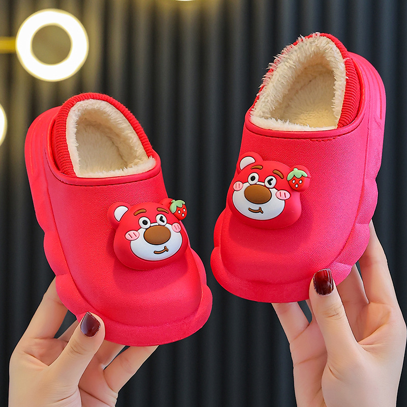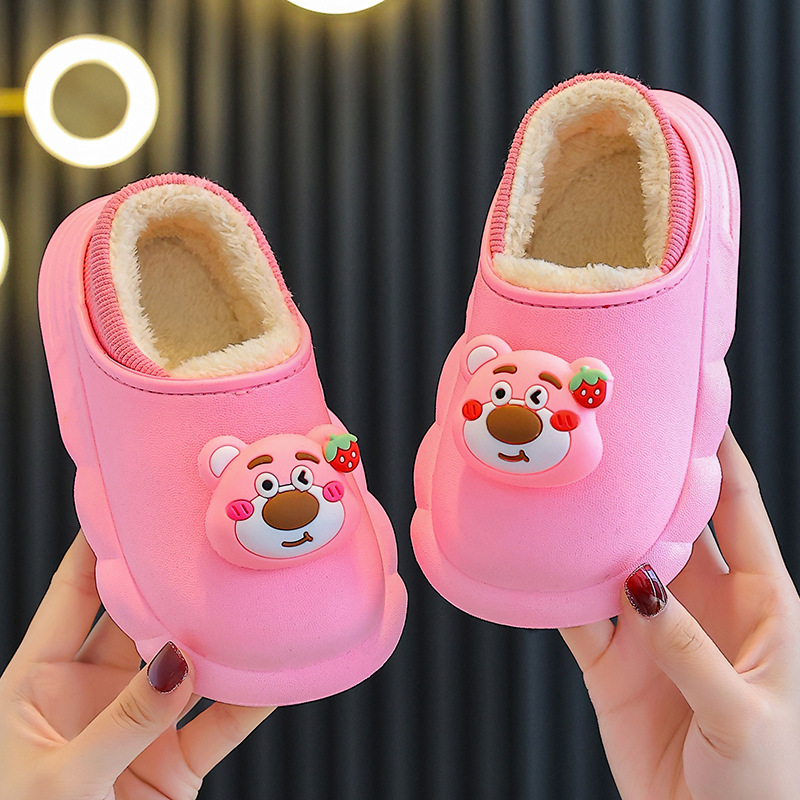 새 집 면화 신발 어린이 겨울 기모 따뜻한 방수 미끄럼 방지 부드러운 바닥 만화 소년과 소녀를위한 아기 면 슬리퍼스토어 가기