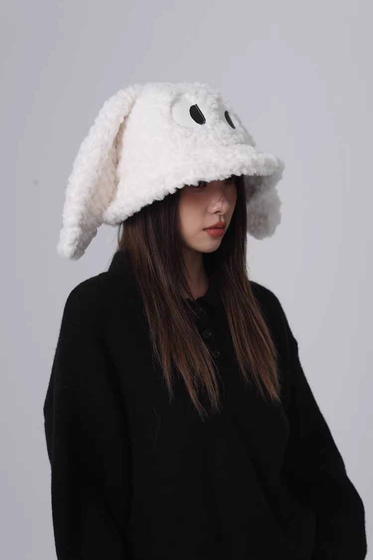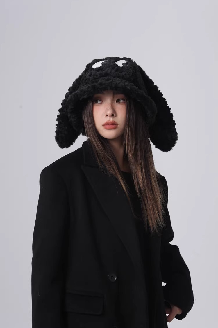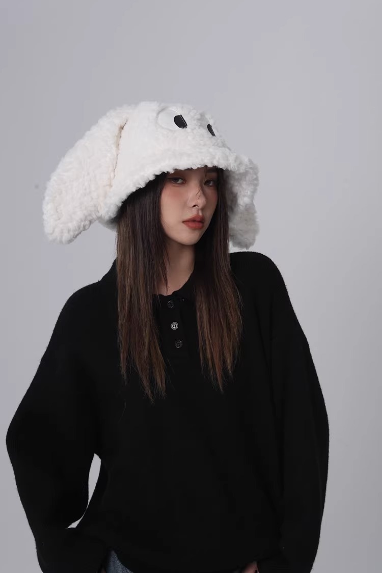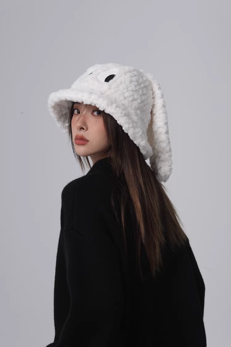겨울 새로운 큰 귀 개 만화 양고기 양털 어부 모자 여자의 일본식 따뜻한 귀 보호 귀여운 풀오버 모자