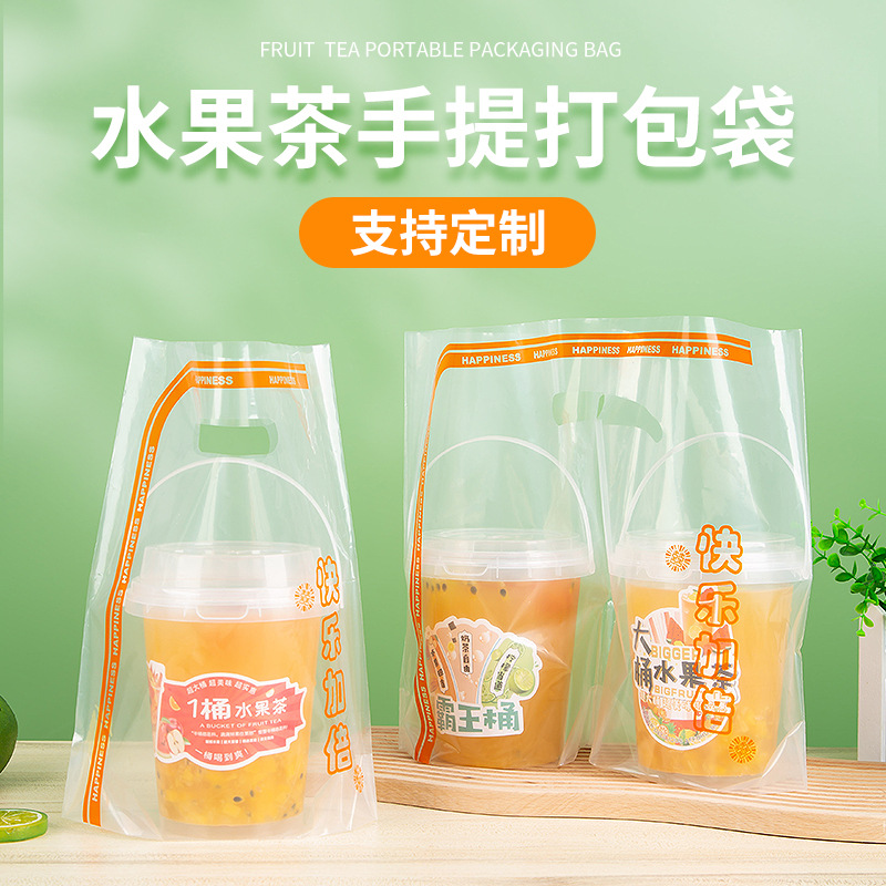 일회용 대형 컵 과일 차 포장 가방 싱글 컵 더블 컵 배럴 우유 차 포장 가방 음료 플라스틱 핸드백스토어 가기