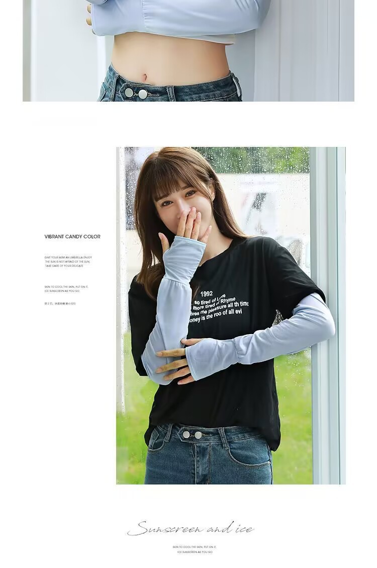 아이스 실크 슬리브 여성용 자외선 차단제 여름 얇은 느슨한 운전 사이클링 라이딩 UV 유행 팔 장갑 소매