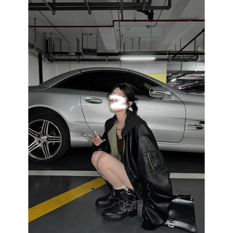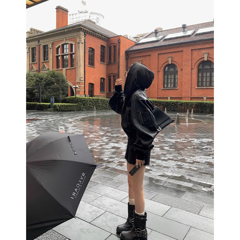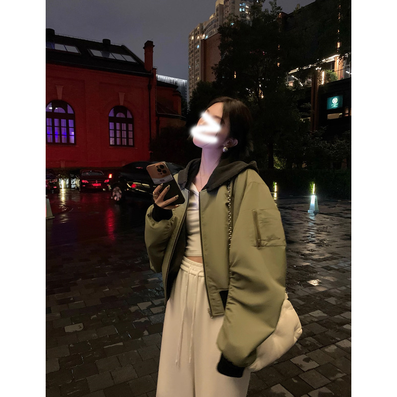 Ouyang 여성용 양면 pu 가죽 후드 자켓 겨울 새로운 두꺼운 퀼트 복고풍 짧은 자켓 탑스토어 가기