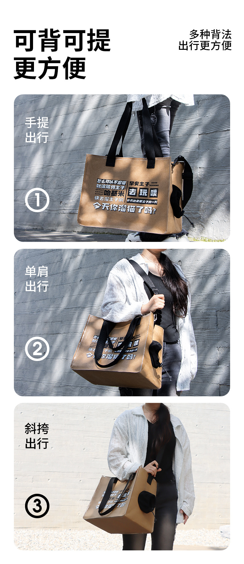 크라프트 종이 고양이 가방, 휴대용 가방, 고양이 가방, 크로스백, 애완동물 가방, 고양이 책가방, 고양이 애완동물용 백팩
