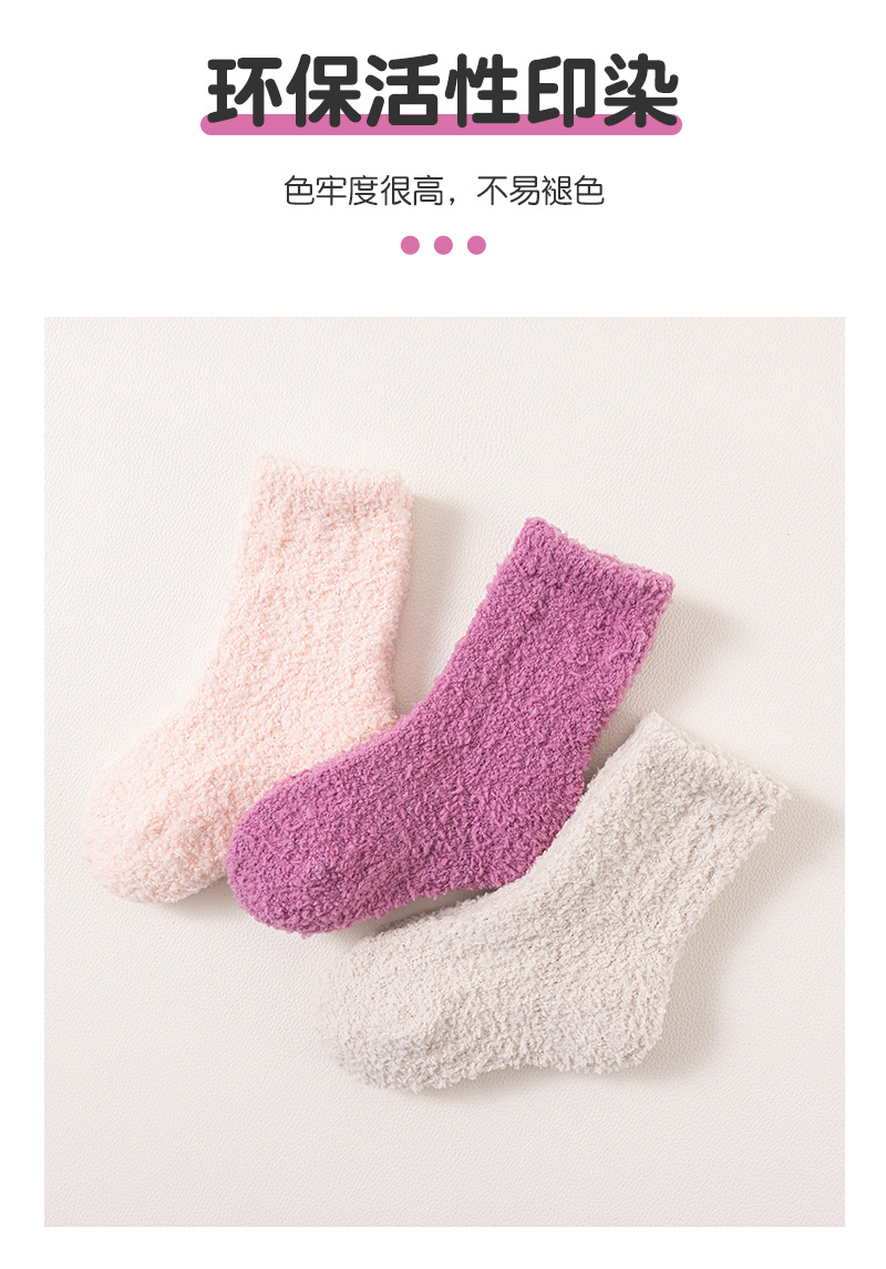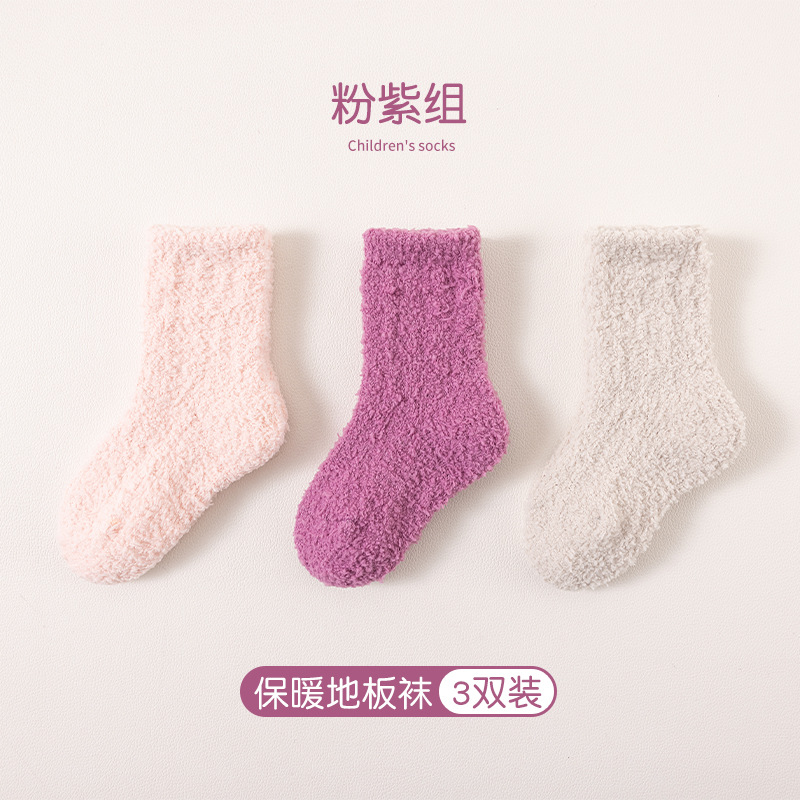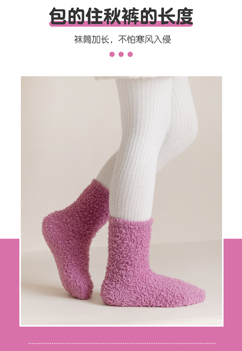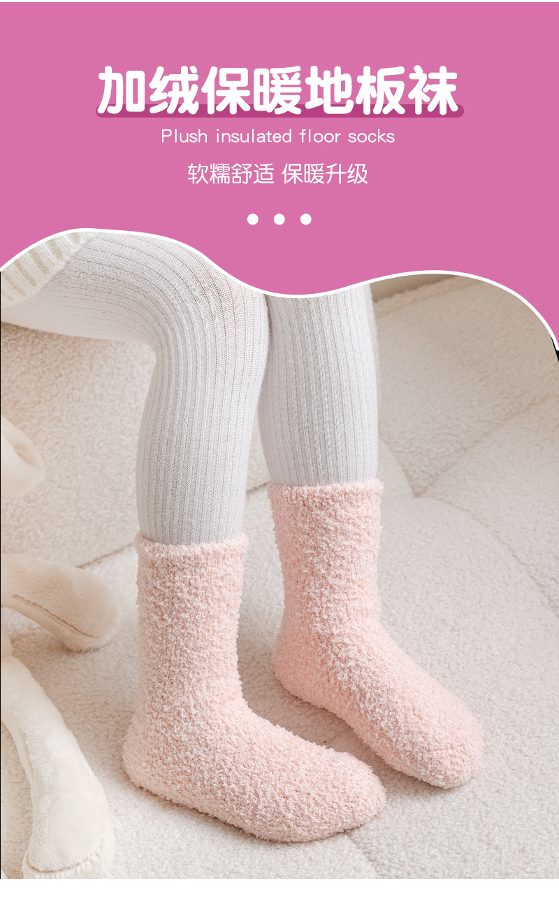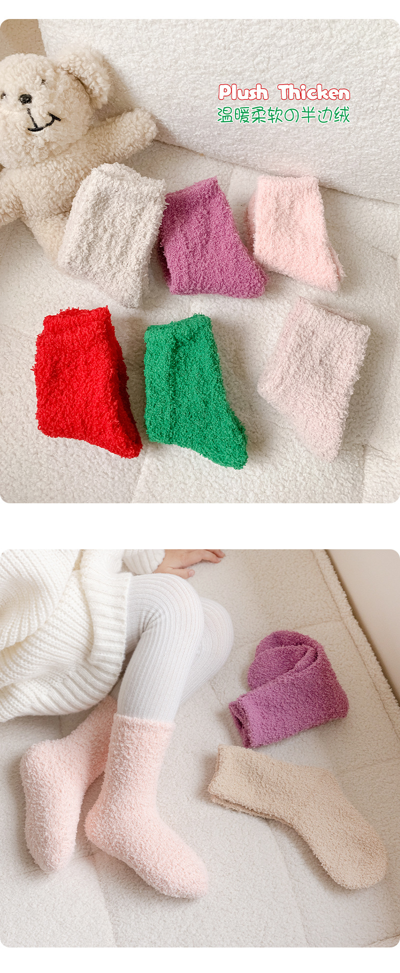 가을 겨울 아기용 플러스 벨벳 중간 길이 양말 단색 코랄 벨벳 보온 양말 두꺼운 어린이용 편안한 바닥 양말 부모 자녀용스토어 가기