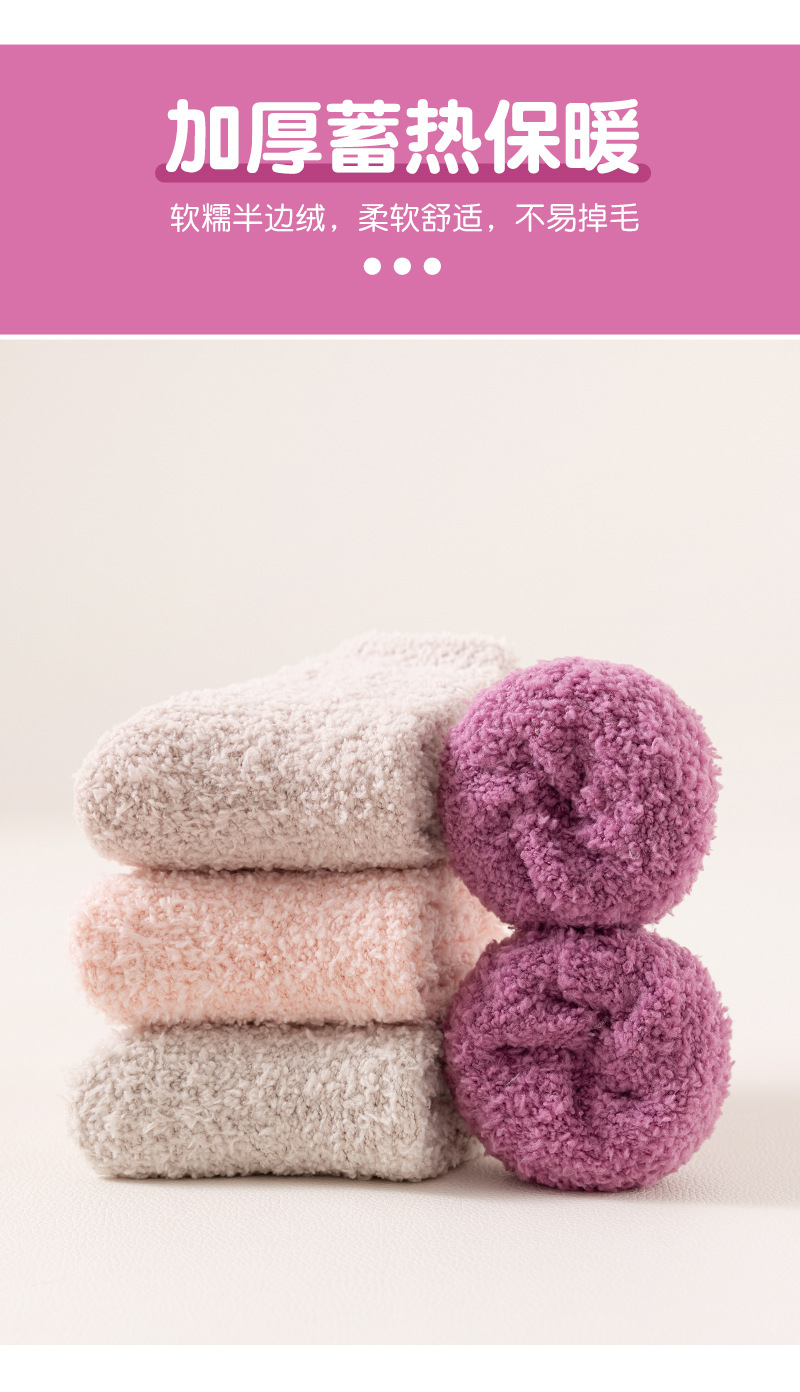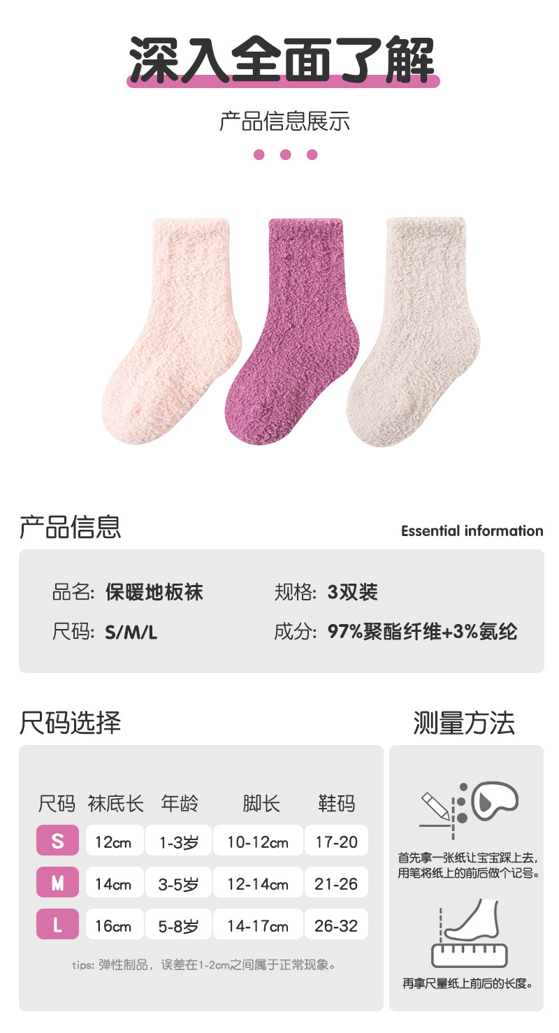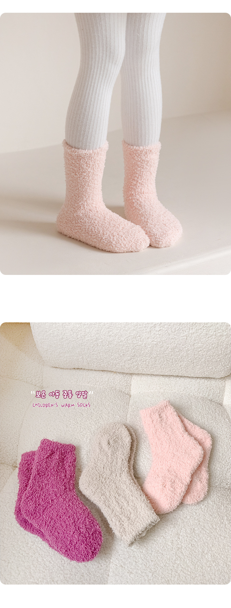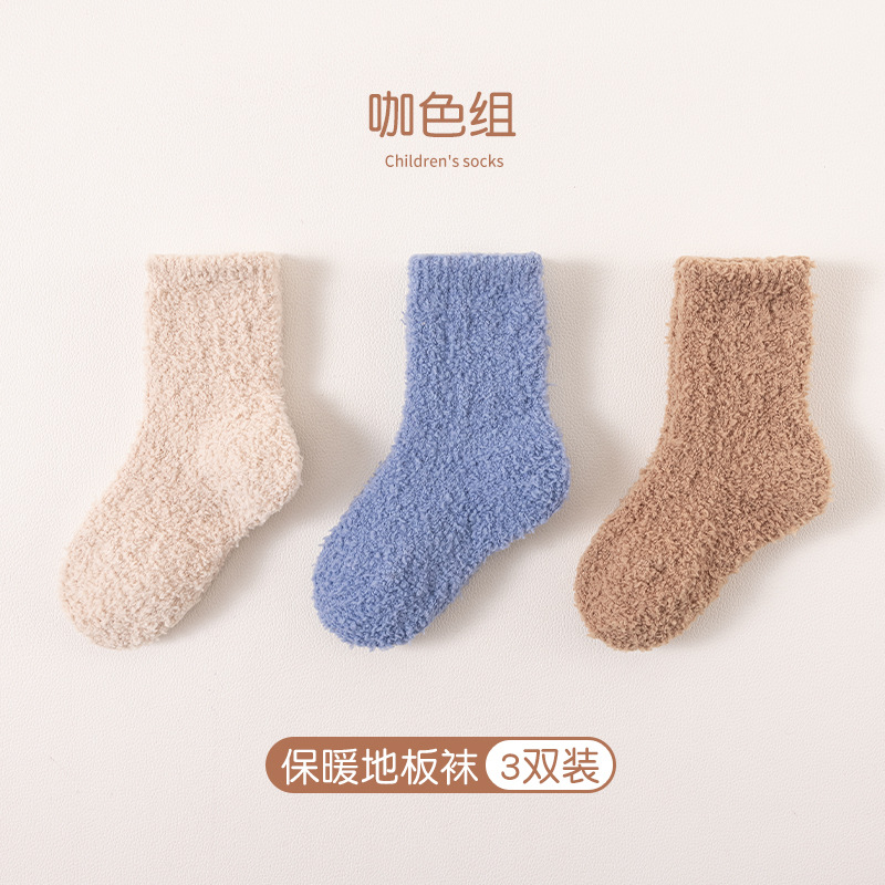 가을 겨울 아기용 플러스 벨벳 중간 길이 양말 단색 코랄 벨벳 보온 양말 두꺼운 어린이용 편안한 바닥 양말 부모 자녀용스토어 가기