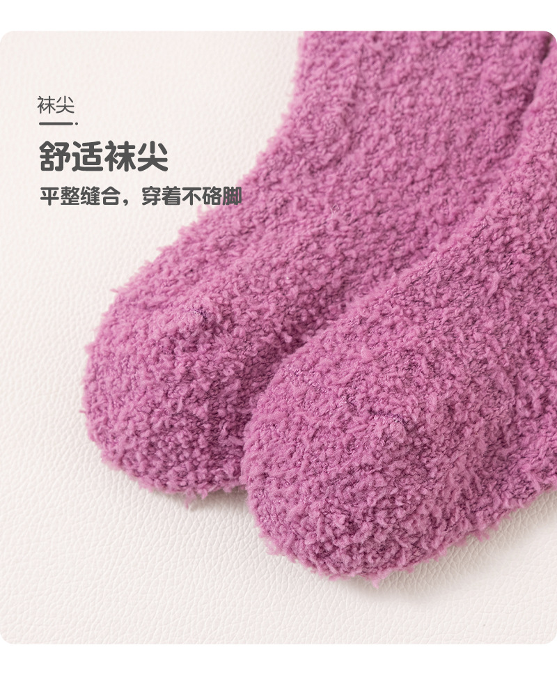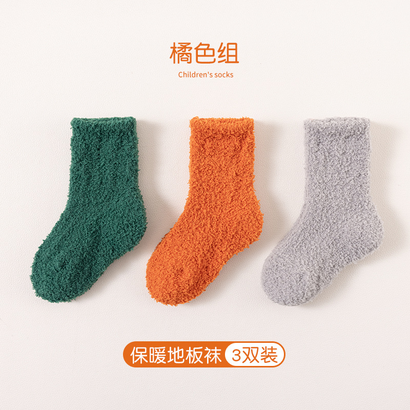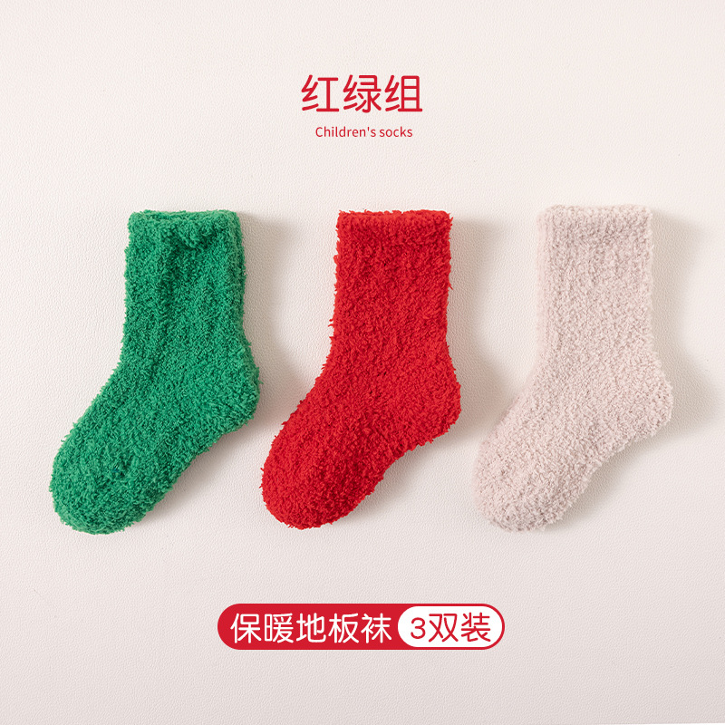 가을 겨울 아기용 플러스 벨벳 중간 길이 양말 단색 코랄 벨벳 보온 양말 두꺼운 어린이용 편안한 바닥 양말 부모 자녀용