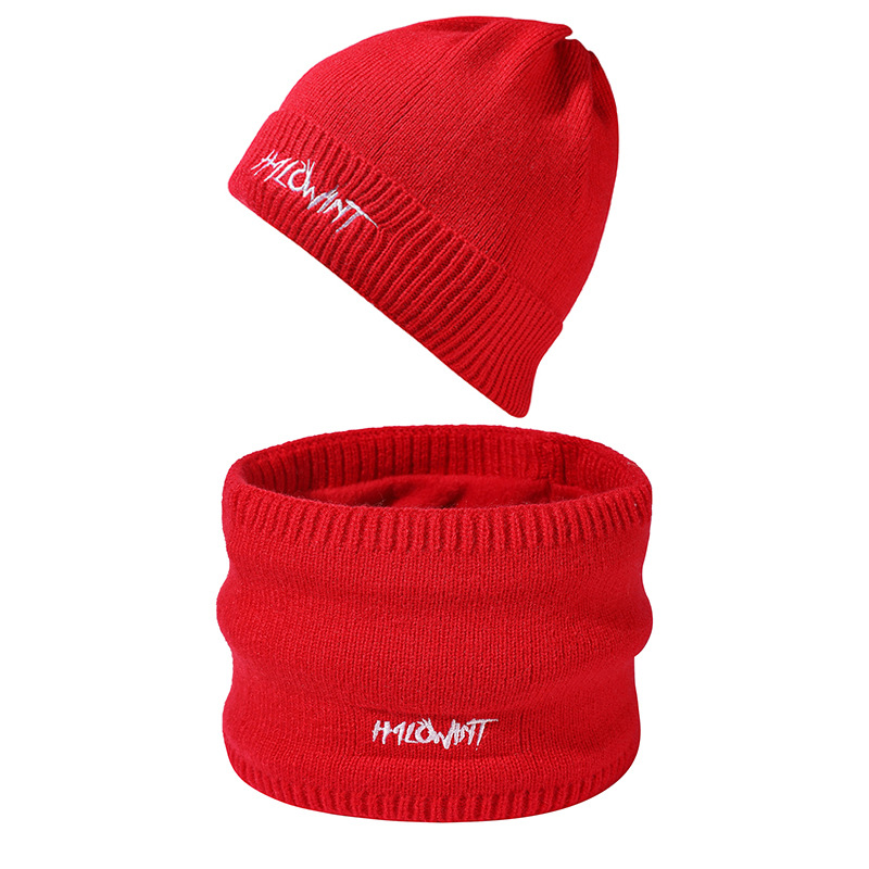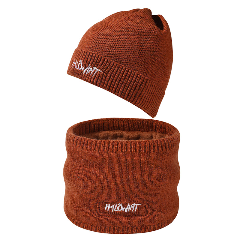 재고 겨울 새로운 남성과 여성의 기모 두꺼운 따뜻한 모자 스카프 모든 일치 단색 자수 스카프 세트 크로스 보더