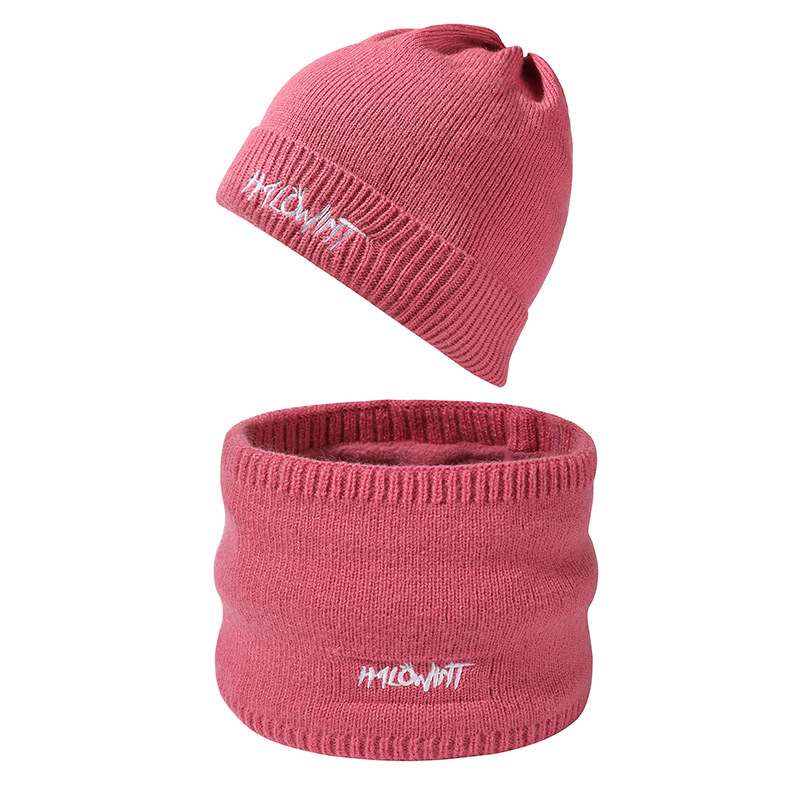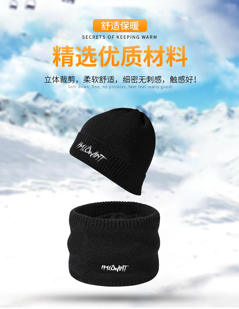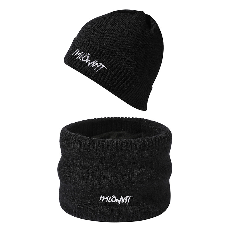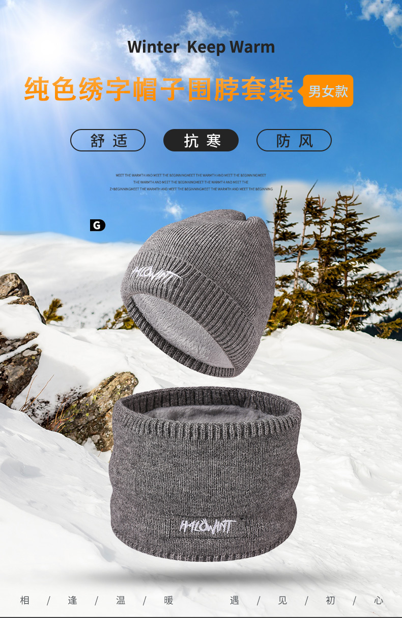 재고 겨울 새로운 남성과 여성의 기모 두꺼운 따뜻한 모자 스카프 모든 일치 단색 자수 스카프 세트 크로스 보더스토어 가기