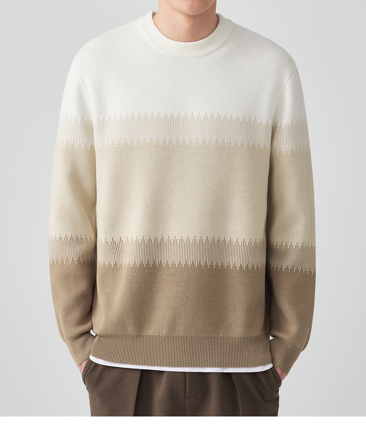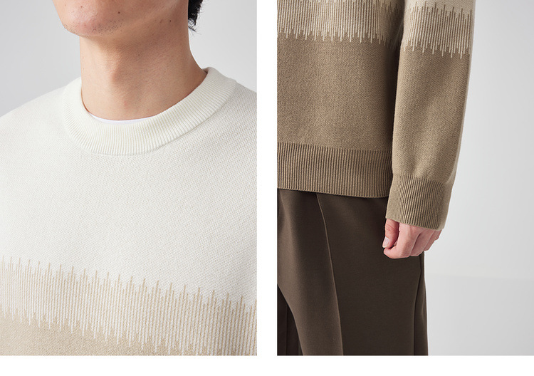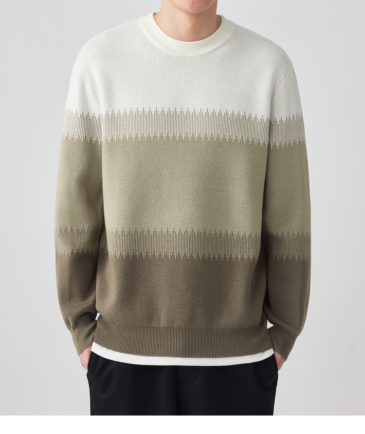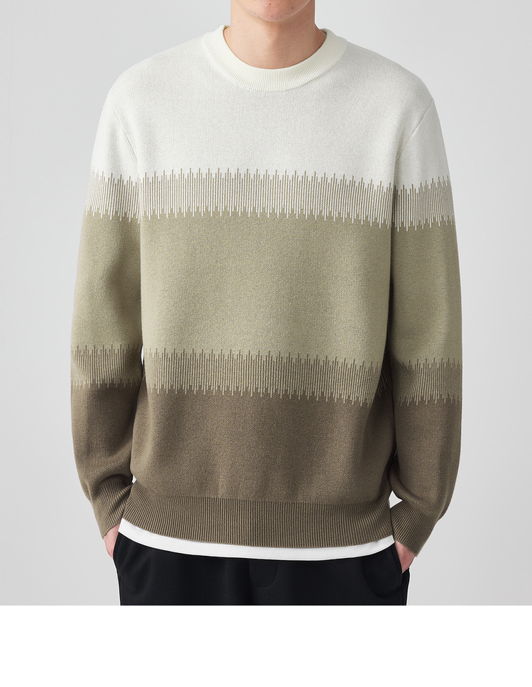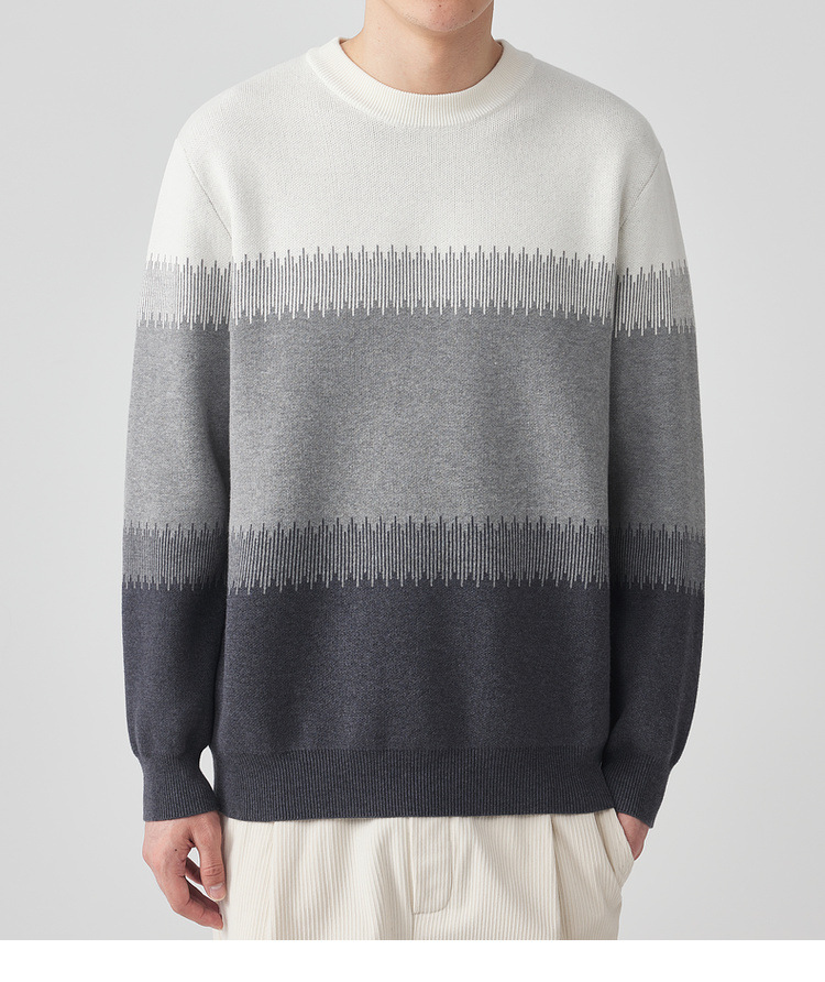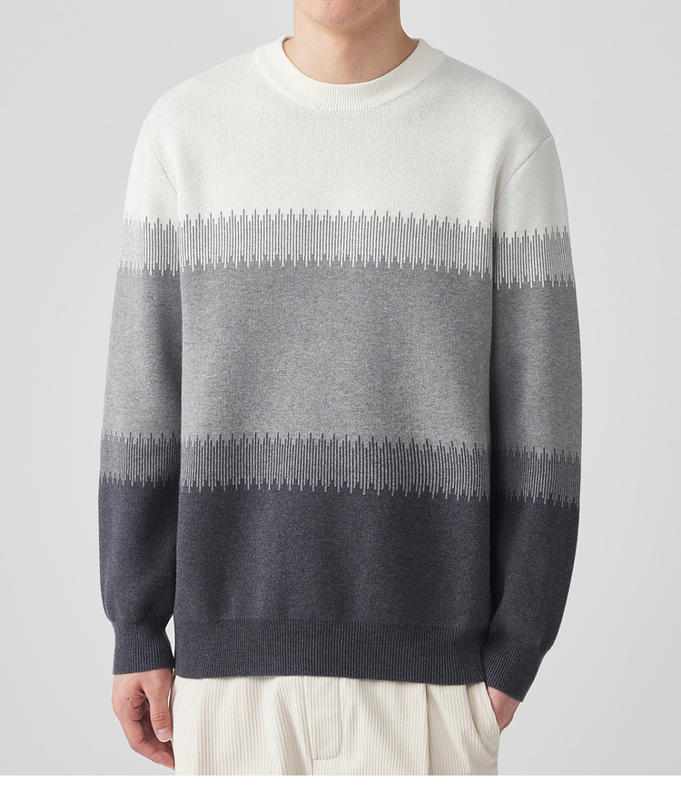 모마이크 패션 배색 라운드넥 스웨터 남성용 2025 겨울 모델 참깨 점무늬 남성 니트웨어 20510.스토어 가기