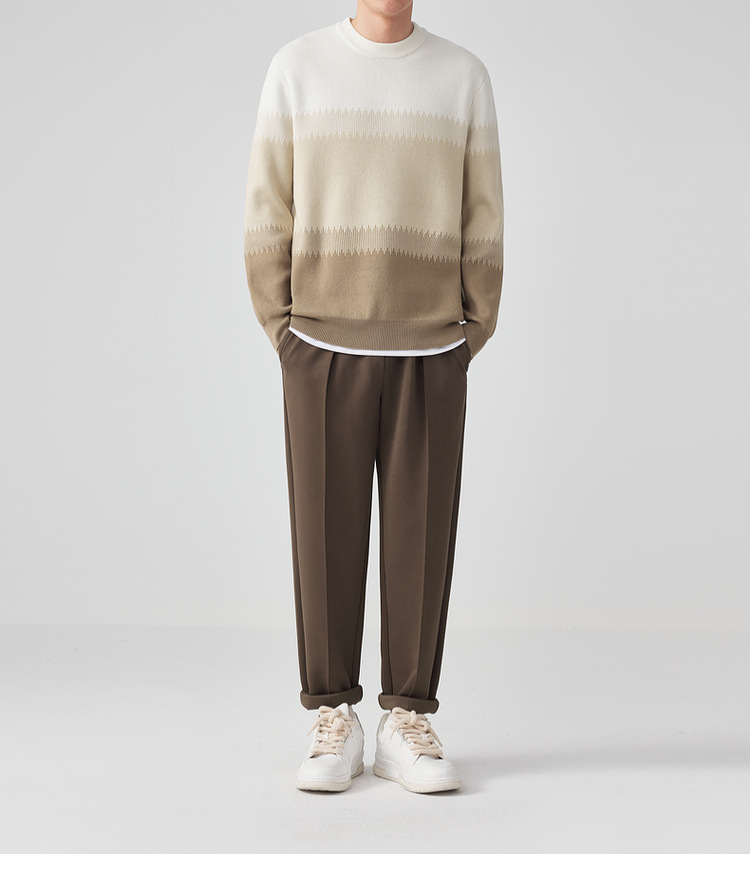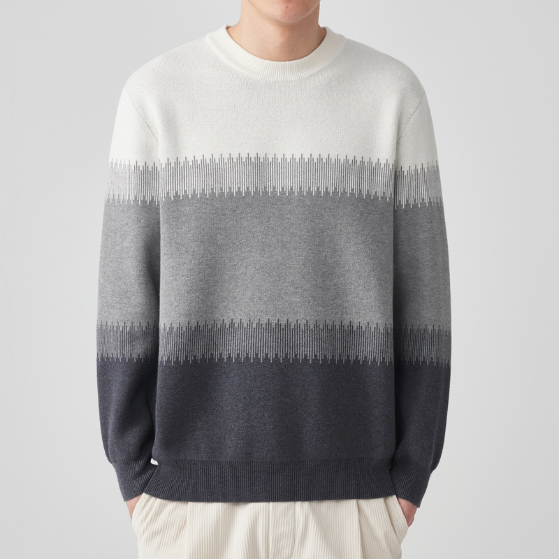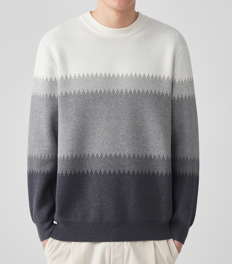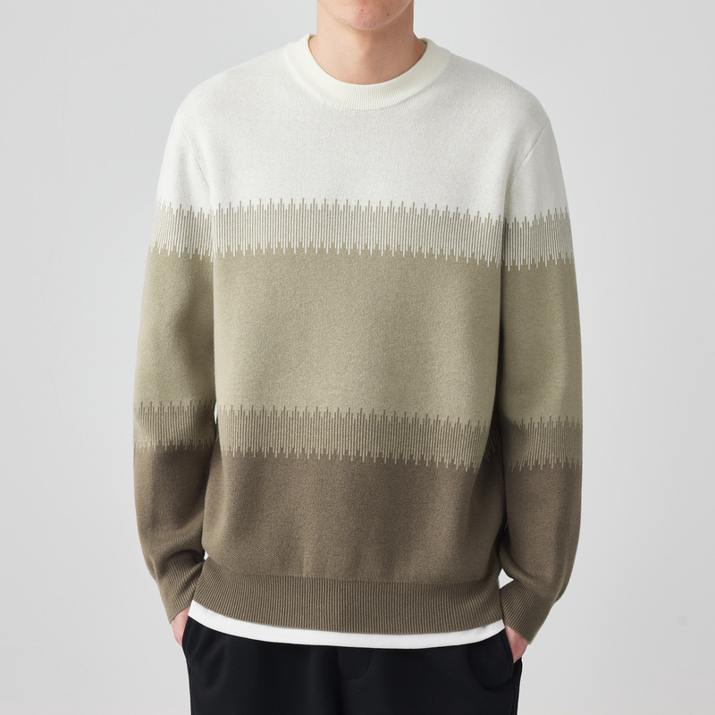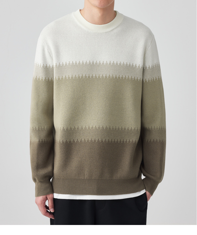 모마이크 패션 배색 라운드넥 스웨터 남성용 2025 겨울 모델 참깨 점무늬 남성 니트웨어 20510.스토어 가기