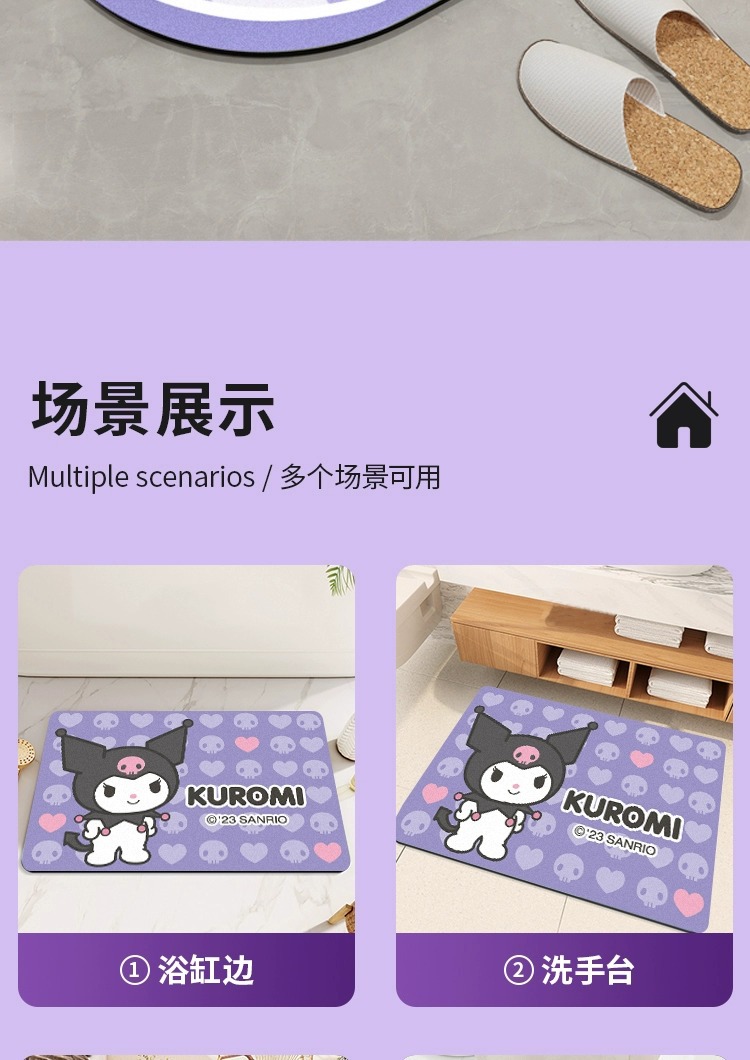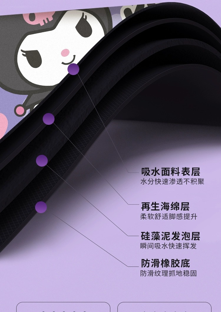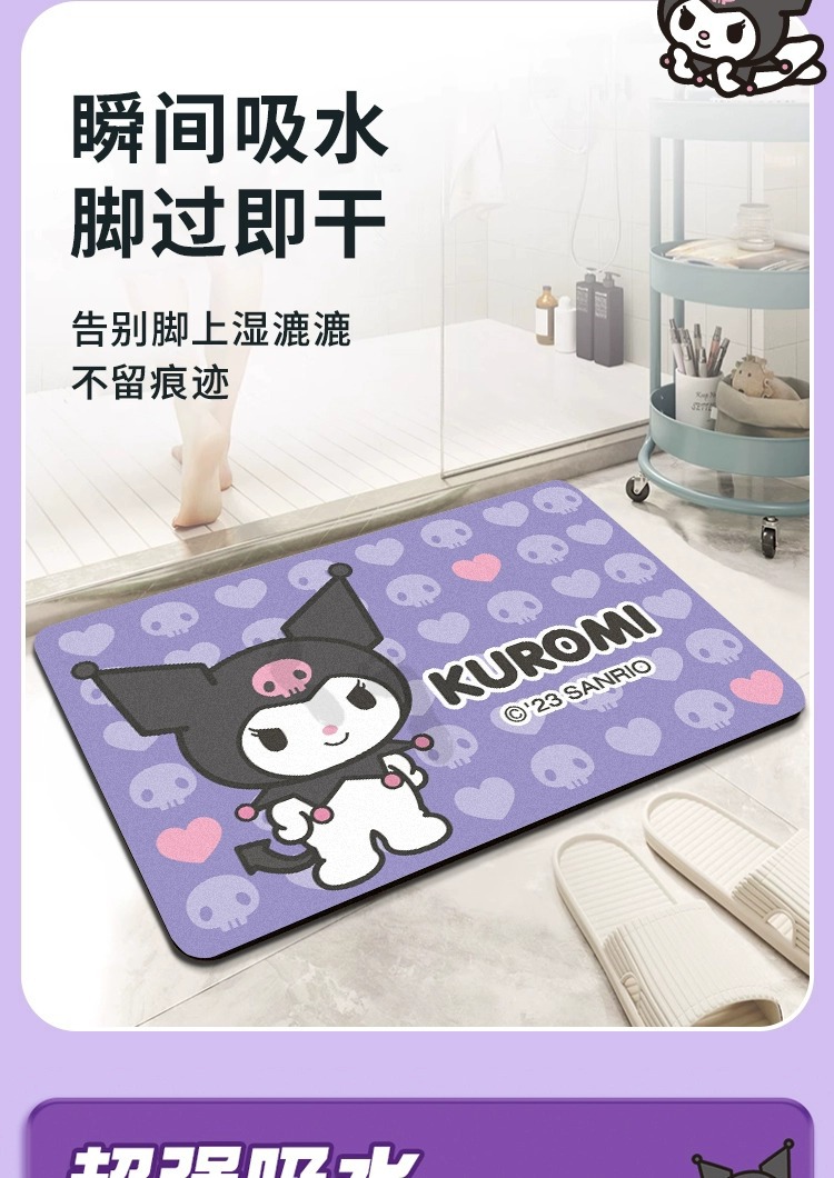 산리오 쿠로미 규조토 흡수 매트 욕실 미끄럼 방지 침실 카펫 흡수 빠른 건조