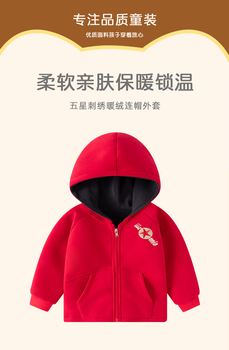 25 겨울 소년 새로운 코트 기모 두꺼운 이중 만화 빨간 어린이 후드 카디건 머리카락 세대