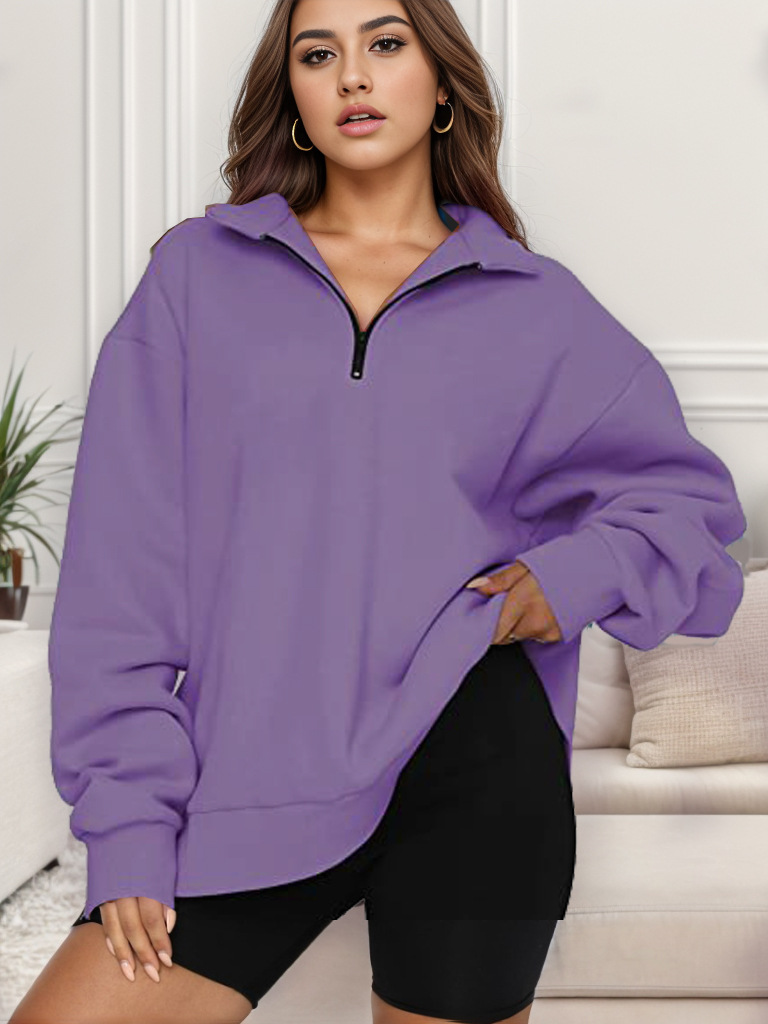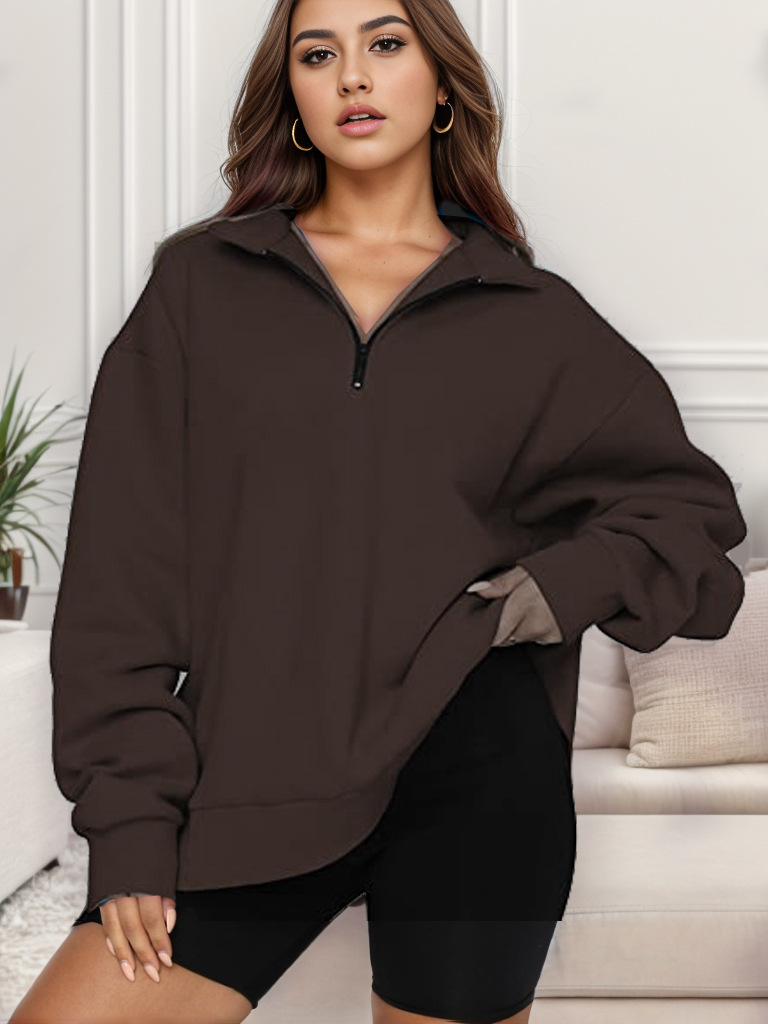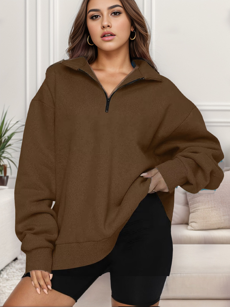 2023 가을과 겨울 새로운 유럽과 미국 여성 의류 아마존 캐주얼 탑 하프 지퍼 풀오버 긴 소매 스웨트 셔츠 여성