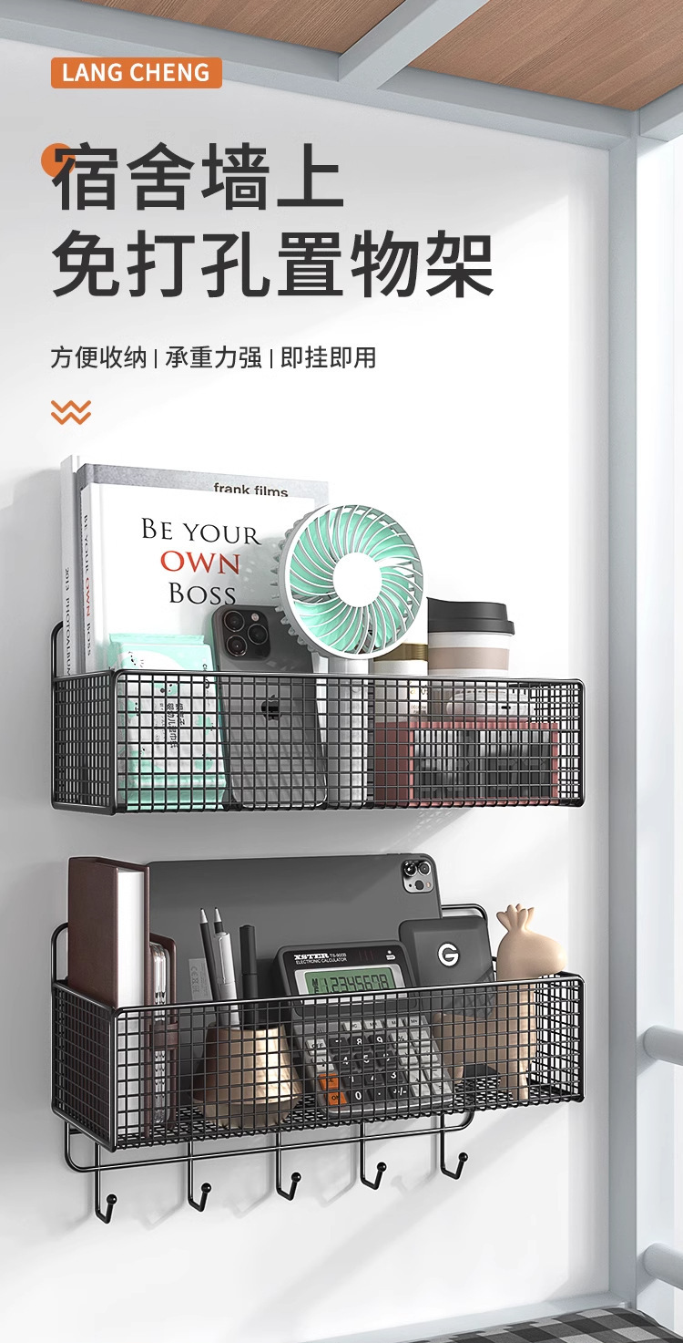 무타공 주방 수납 선반 문 뒤 수납 선반 욕실 벽걸이 수납 선반 흔적 없는 접착식 후크 잡동사니 정리 선반