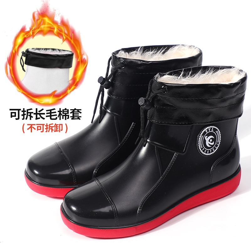 패션 슈퍼 플러스 사이즈 남자의 레인 부츠 미끄럼 방지 방수 장화 기모 따뜻한 고무 신발 짧은 튜브 물 신발 오버 슈즈 여성 도매