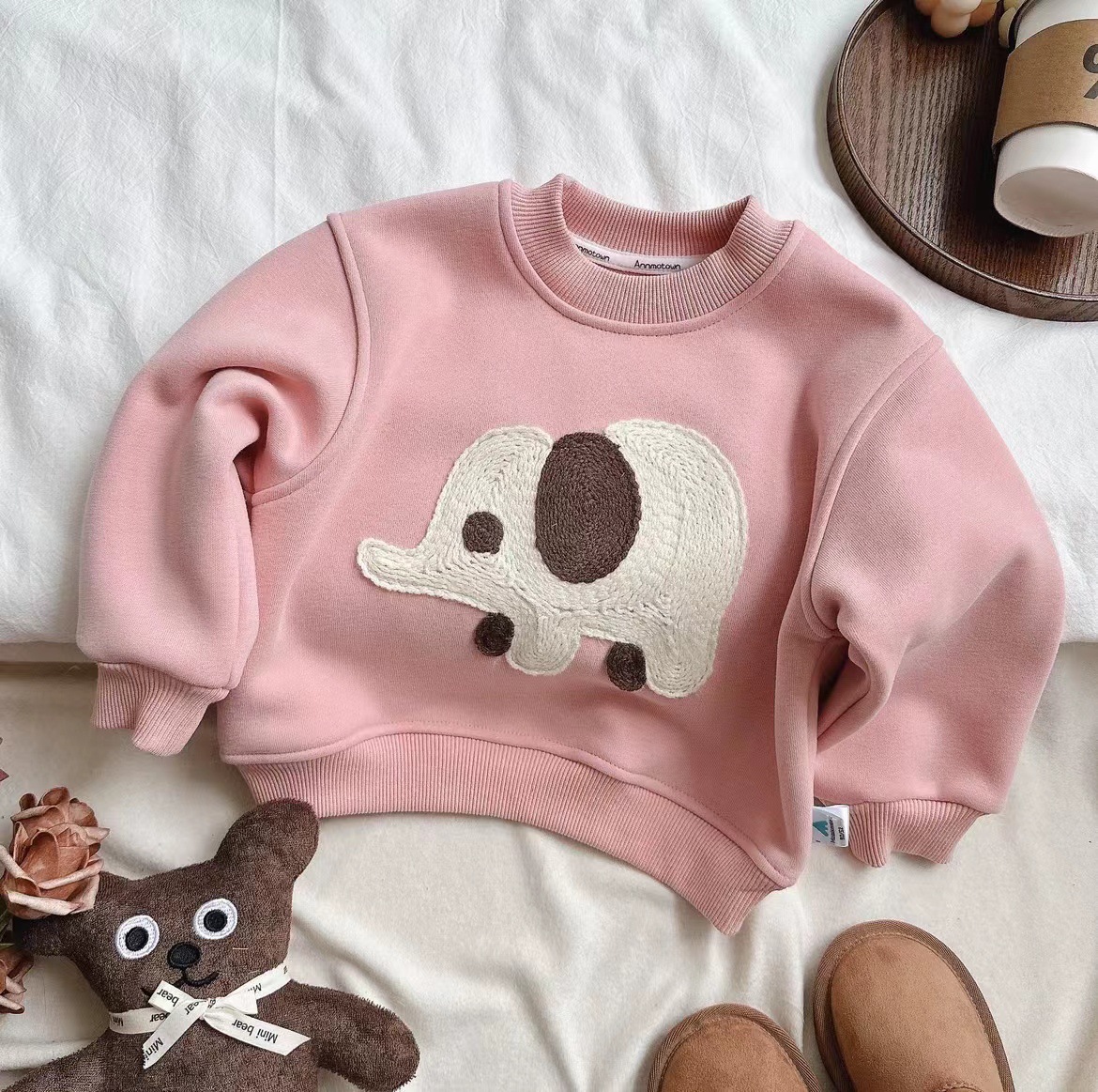童装2023年女童冬季新款加绒卡通印花卫衣女宝宝百搭外穿保暖上衣