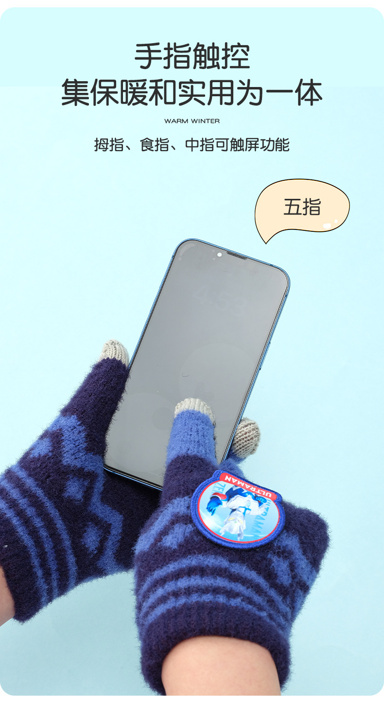 어린이 장갑 겨울 따뜻한 겨울 소년과 어린이 겨울 다섯 손가락 울트라 맨 라인 장갑 아기 소년의 니트 가을스토어 가기