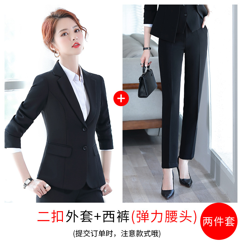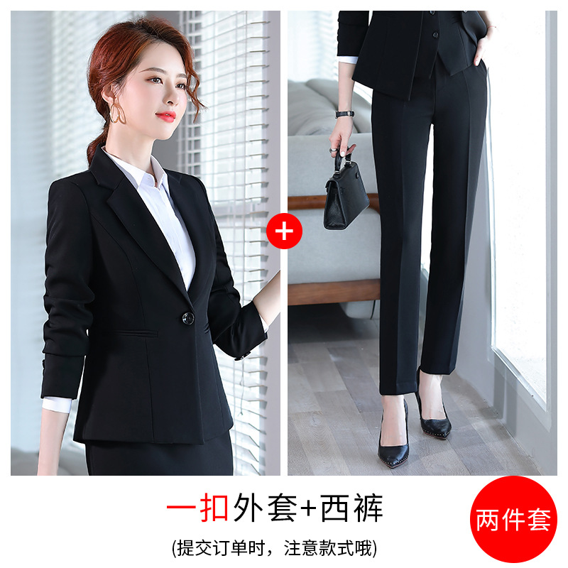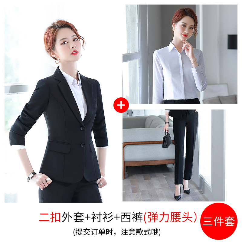공식 원피스 여성 전문 세트 비즈니스 바지 기질 대학생 봄과 가을 검은 세트 세트 코트 여성 플러스 사이즈스토어 가기