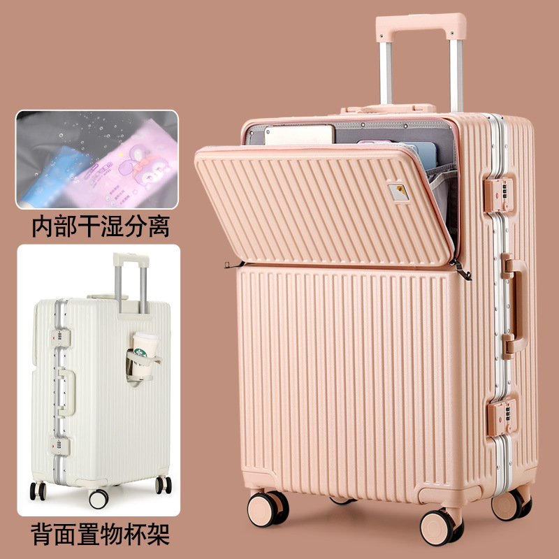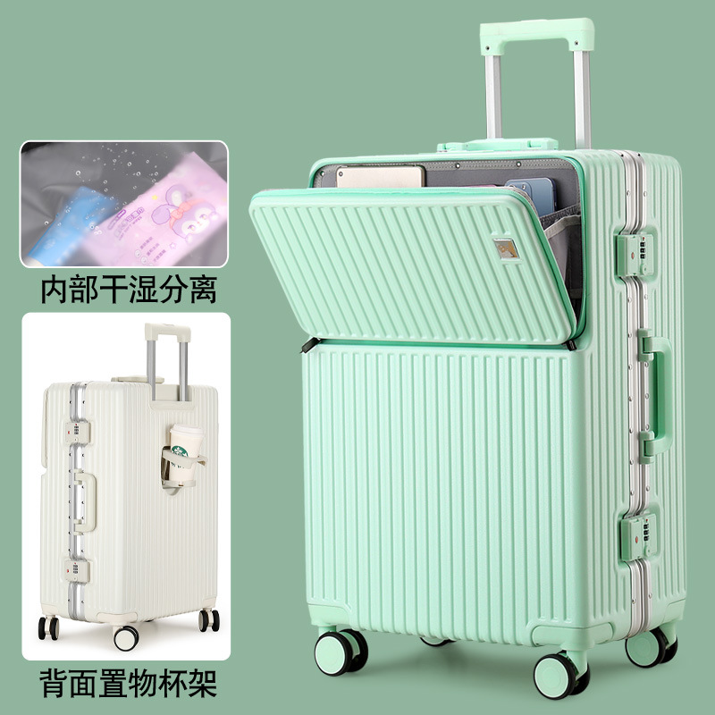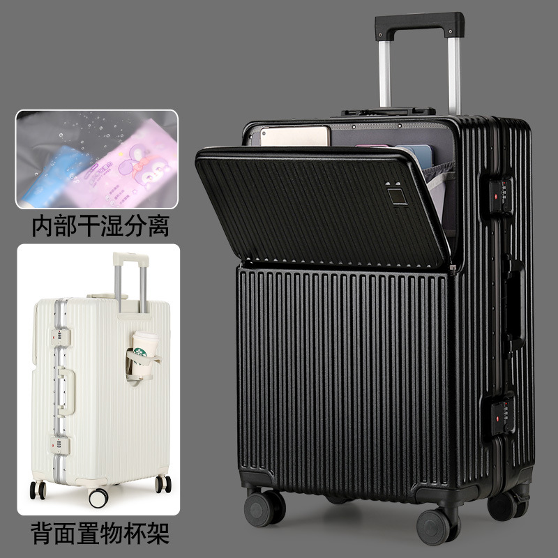 전면 오픈 뚜껑 알루미늄 프레임 트롤리 케이스 용량 증가 암호 상자 비즈니스 가죽 상자 건조 및 습식 이중 레이어 분리 20 인치 장착 케이스스토어 가기