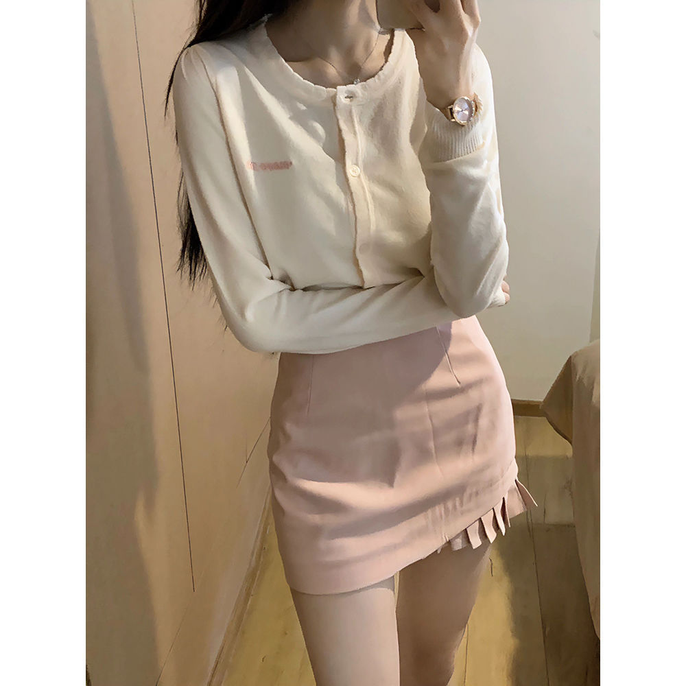 니트 스웨터 Zhao Lusi 윈드 웨어 세트 소녀의 달콤한 핑크 스커트 레이스 작은 카디건 달콤한 투피스 세트스토어 가기