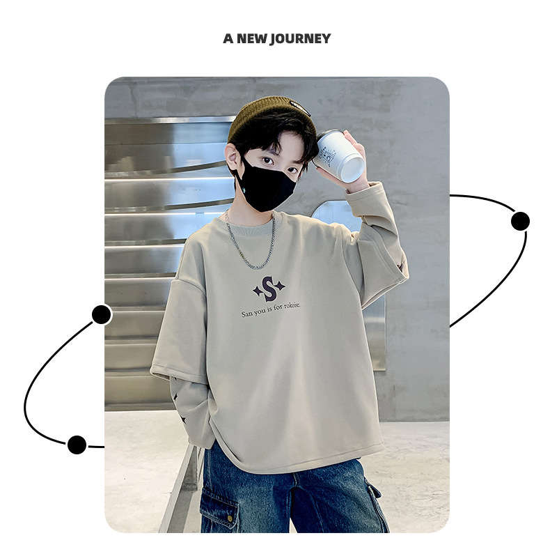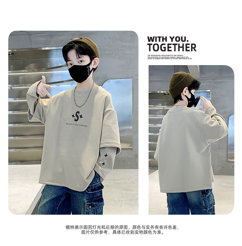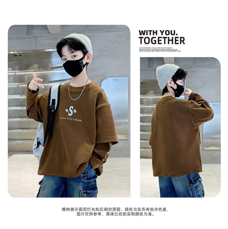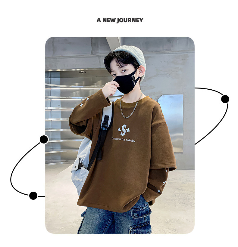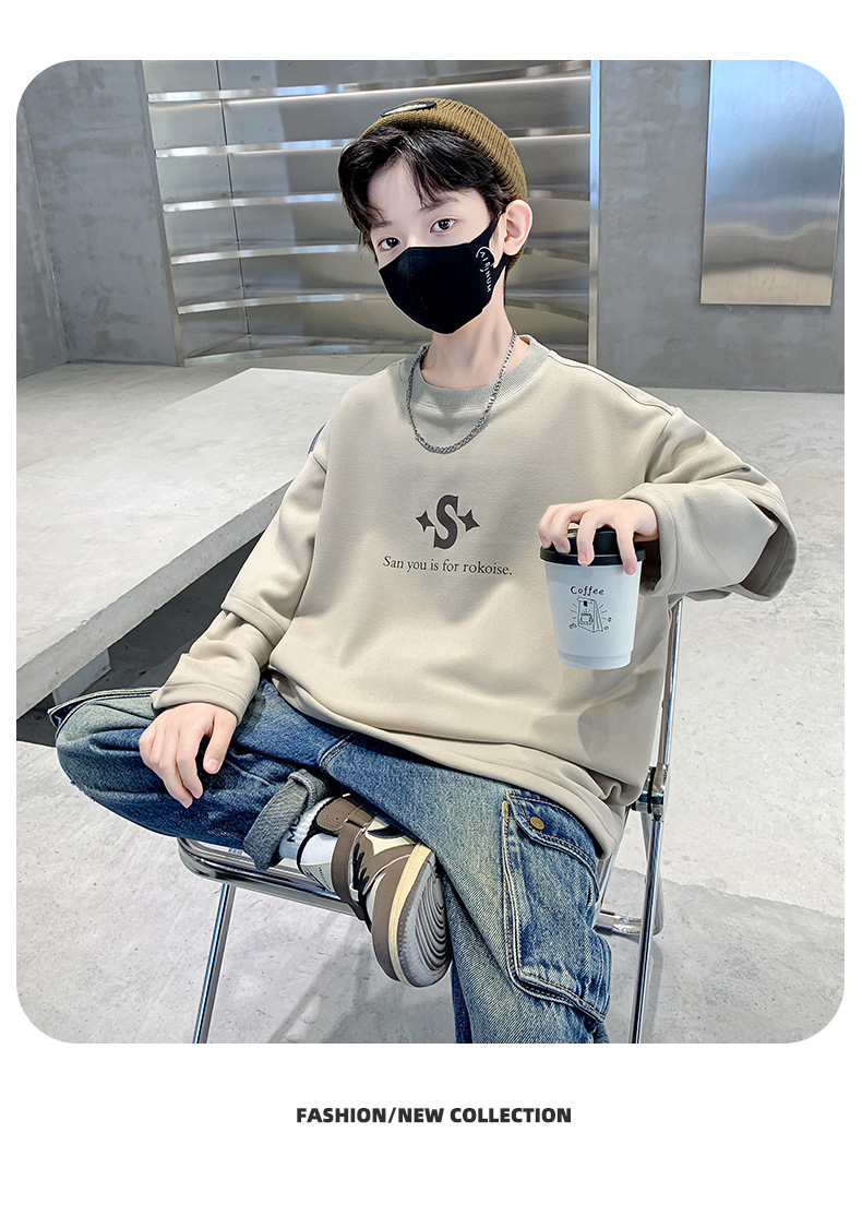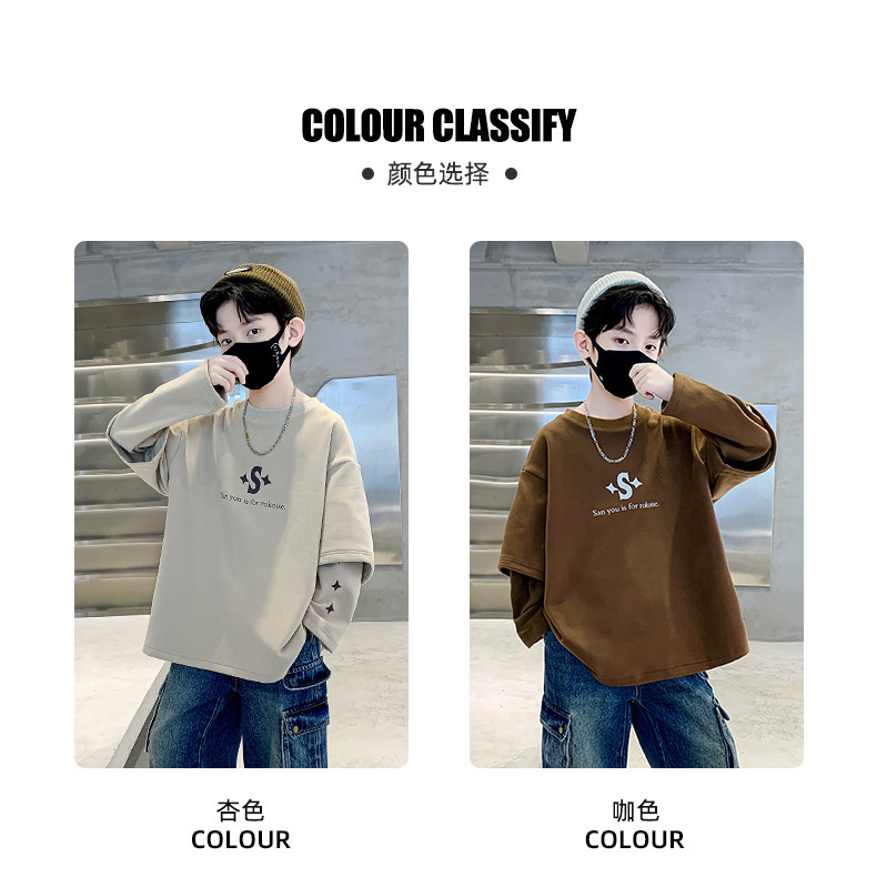 남아용 페이크 투피스 벨벳 스웨트셔츠, 라운드넥, 긴팔, 한국 스타일 다용도 상의, 2024년 신상 중대형 아동 가을 겨울 의류스토어 가기