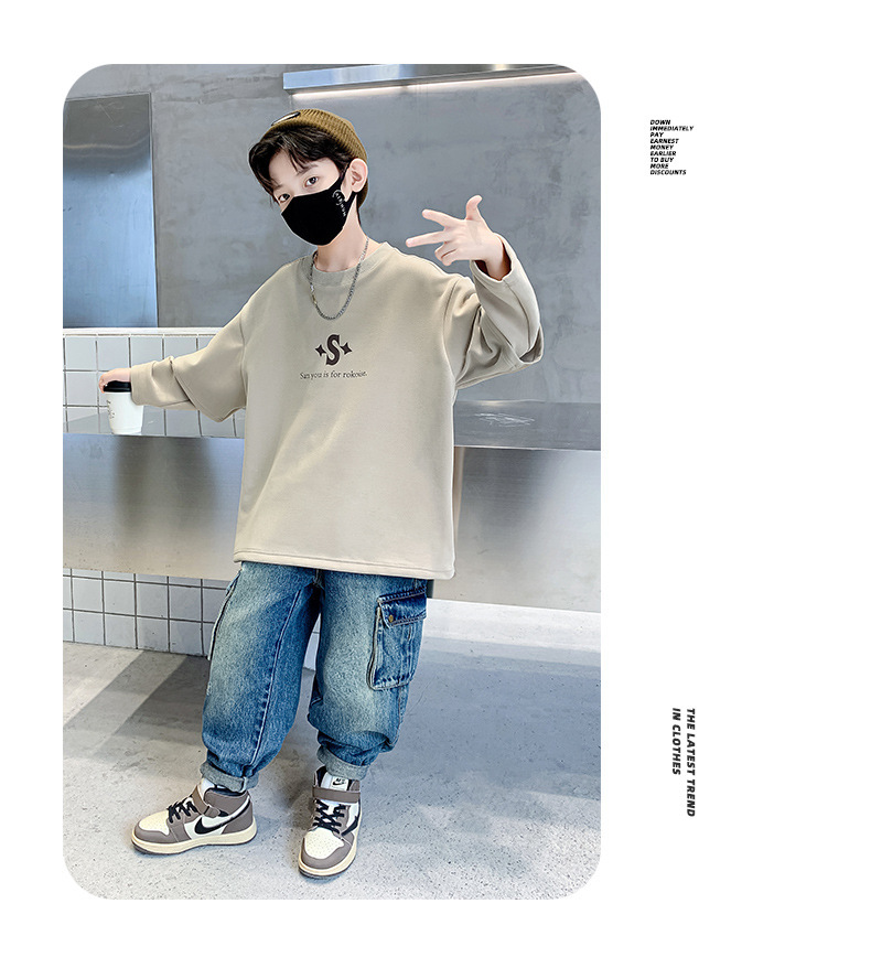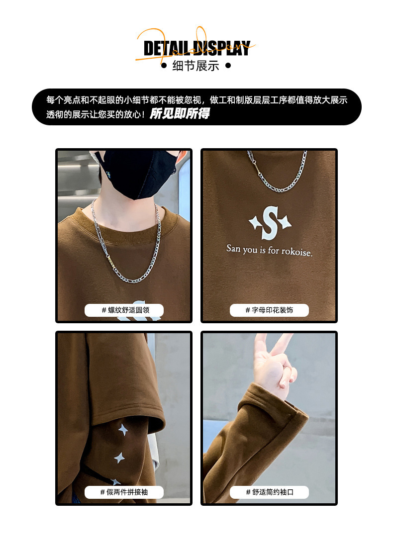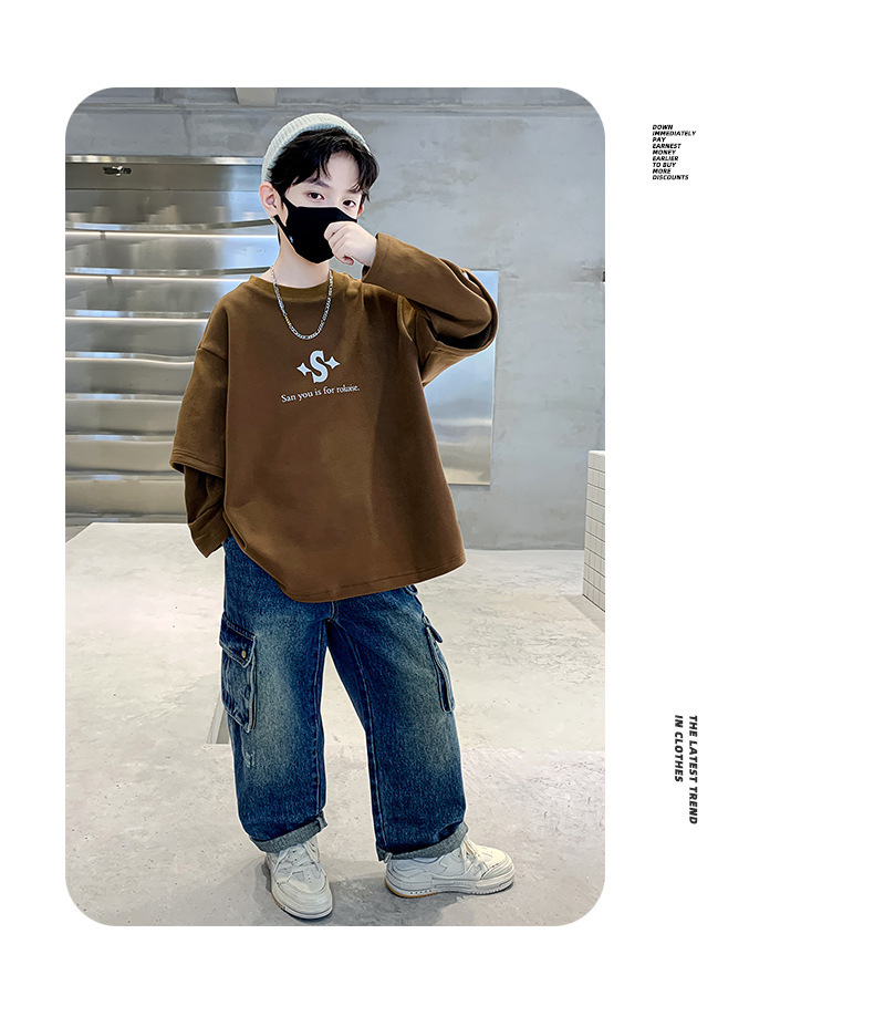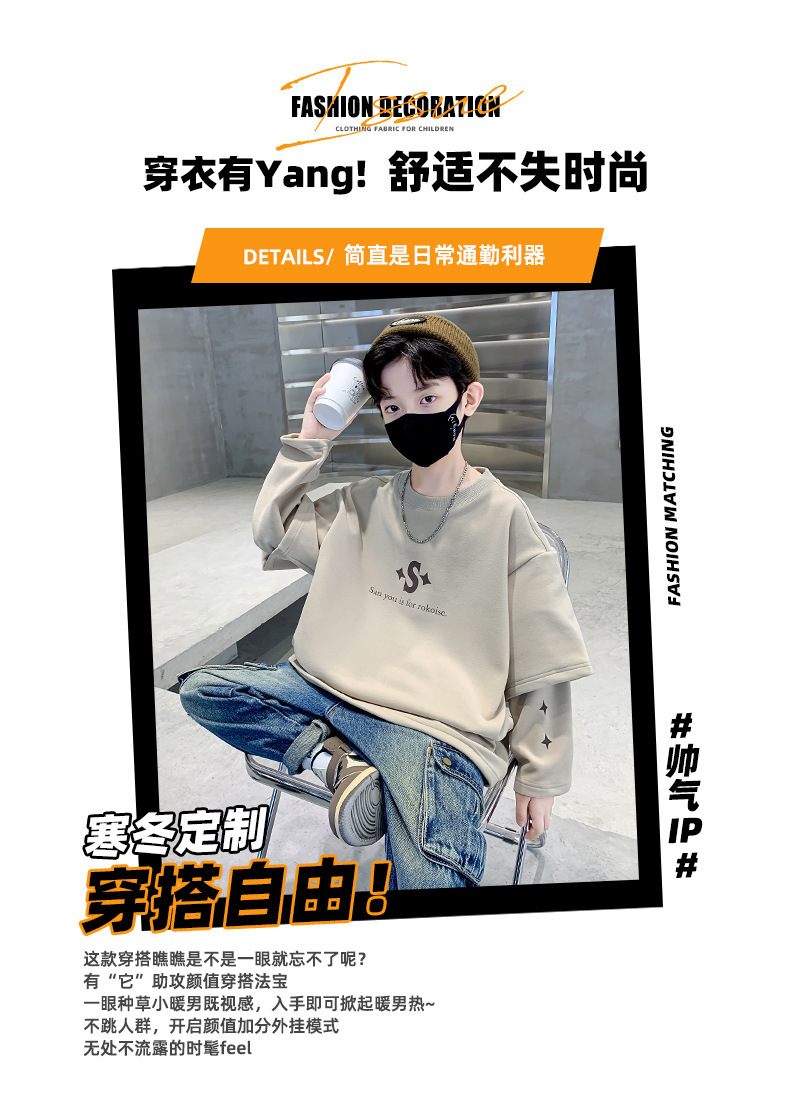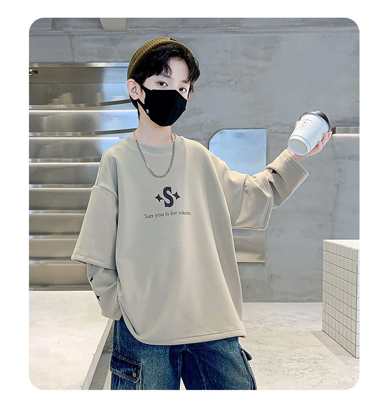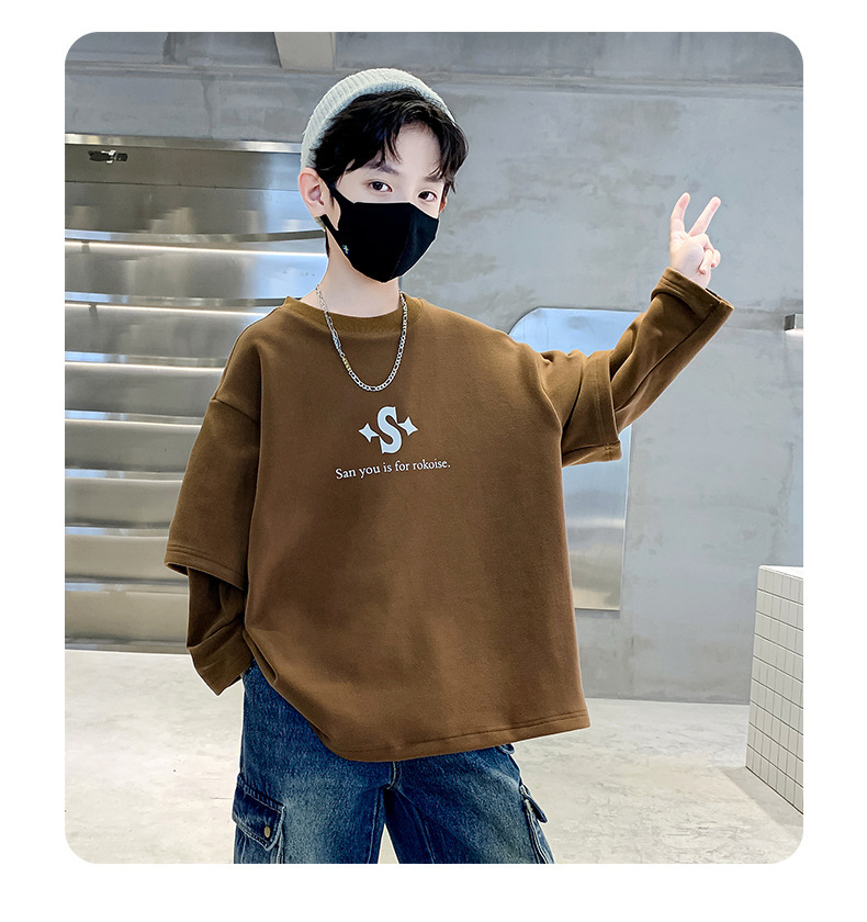 남아용 페이크 투피스 벨벳 스웨트셔츠, 라운드넥, 긴팔, 한국 스타일 다용도 상의, 2024년 신상 중대형 아동 가을 겨울 의류스토어 가기