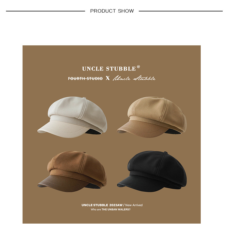 한국식 가을과 겨울 모직 팔각형 모자 복고풍 기질 얼굴 작은 베레모 소녀 일본 문학과 예술 신문 소년 모자 남성 패션스토어 가기