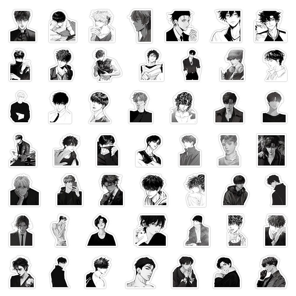 103 만화 흑백 잘 생긴 남자 스티커 높은 모양의 창조적 인 DIY 장식 휴대 전화 쉘 물 컵 방수 스티커스토어 가기