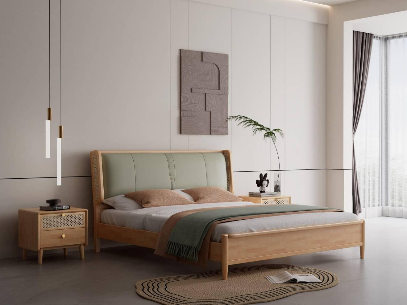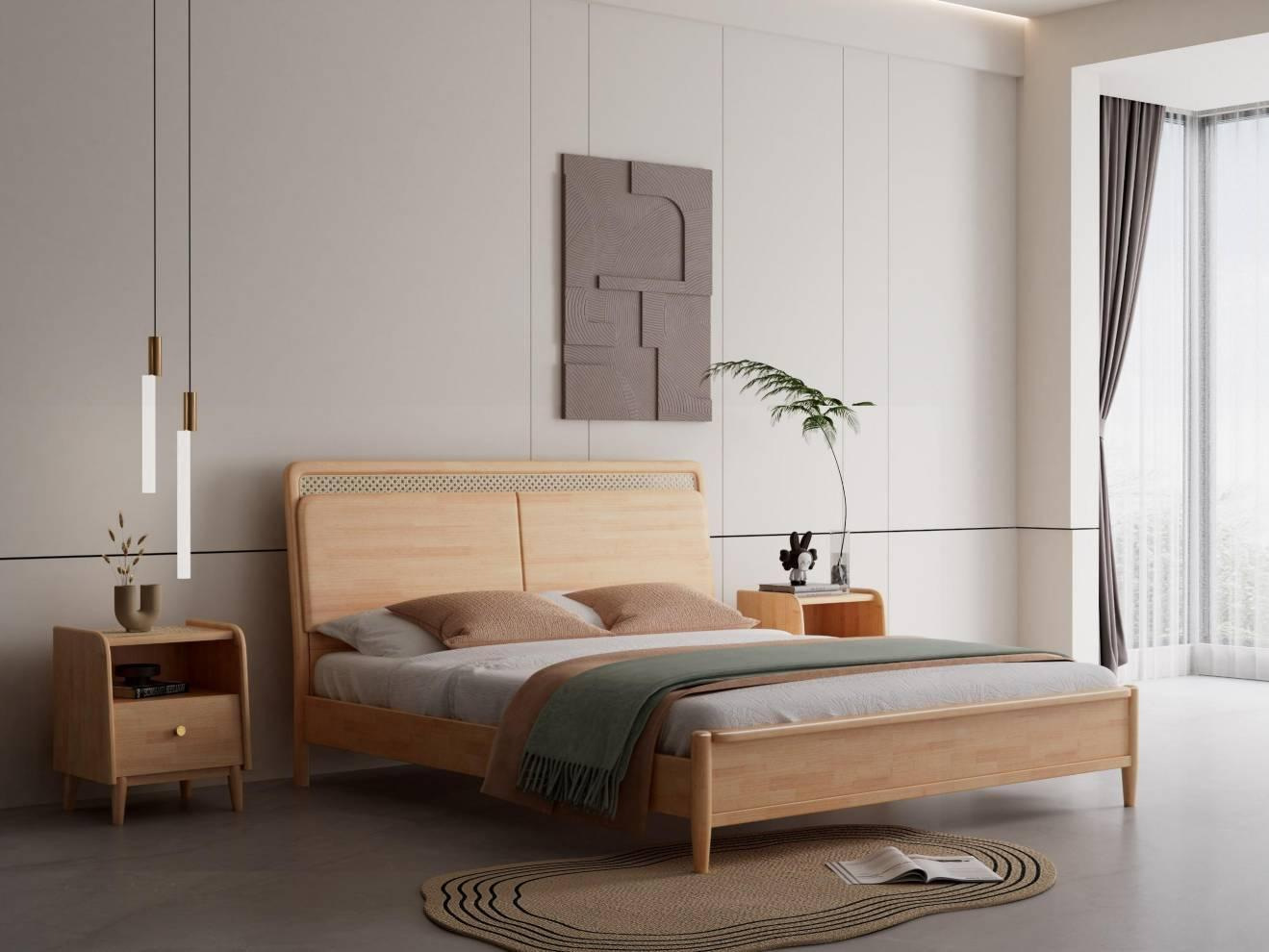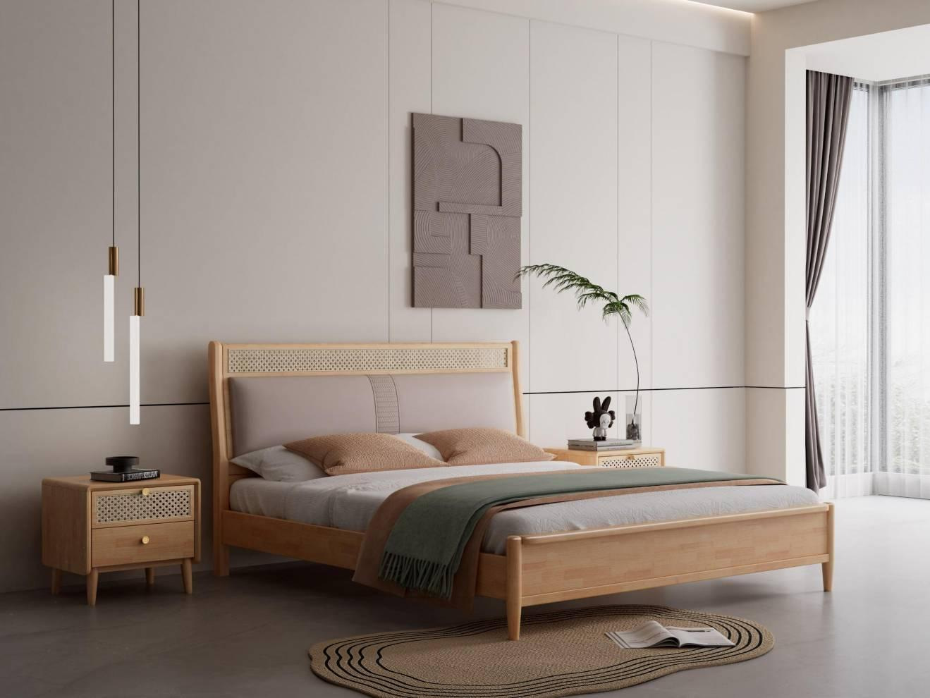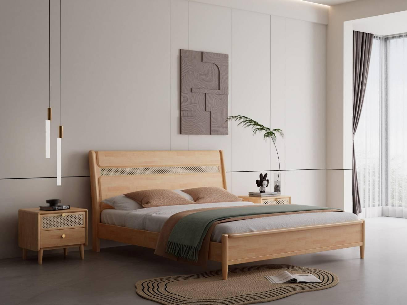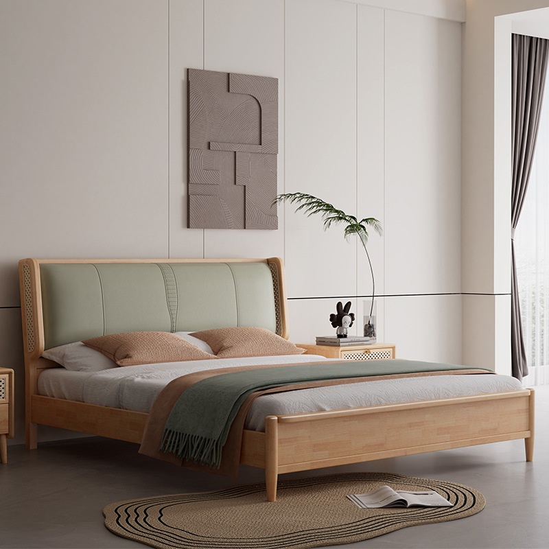 단단한 나무 침대 현대 간단한 1.8 미터 더블 침대 북유럽 일본식 조용한 바람 마스터 침실 1.5 미터 등나무 부드러운 침대
