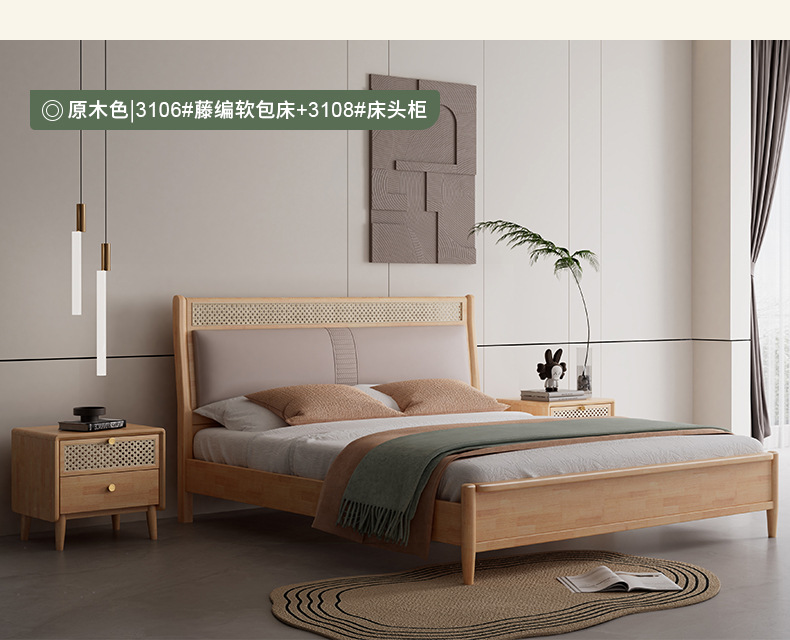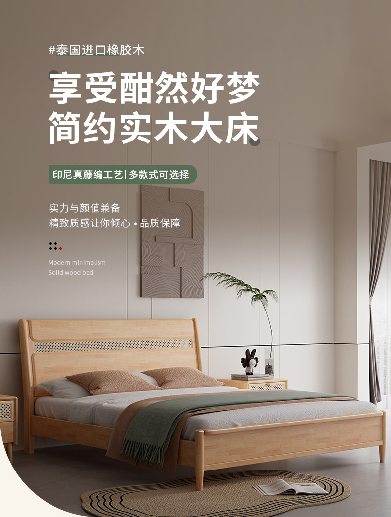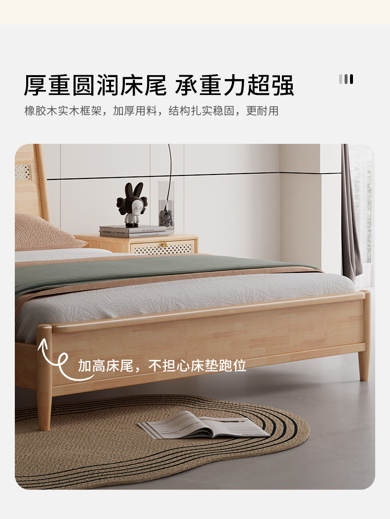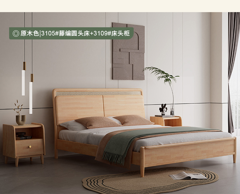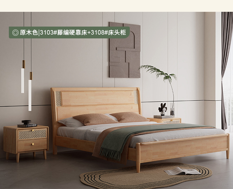 단단한 나무 침대 현대 간단한 1.8 미터 더블 침대 북유럽 일본식 조용한 바람 마스터 침실 1.5 미터 등나무 부드러운 침대스토어 가기