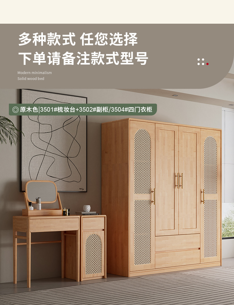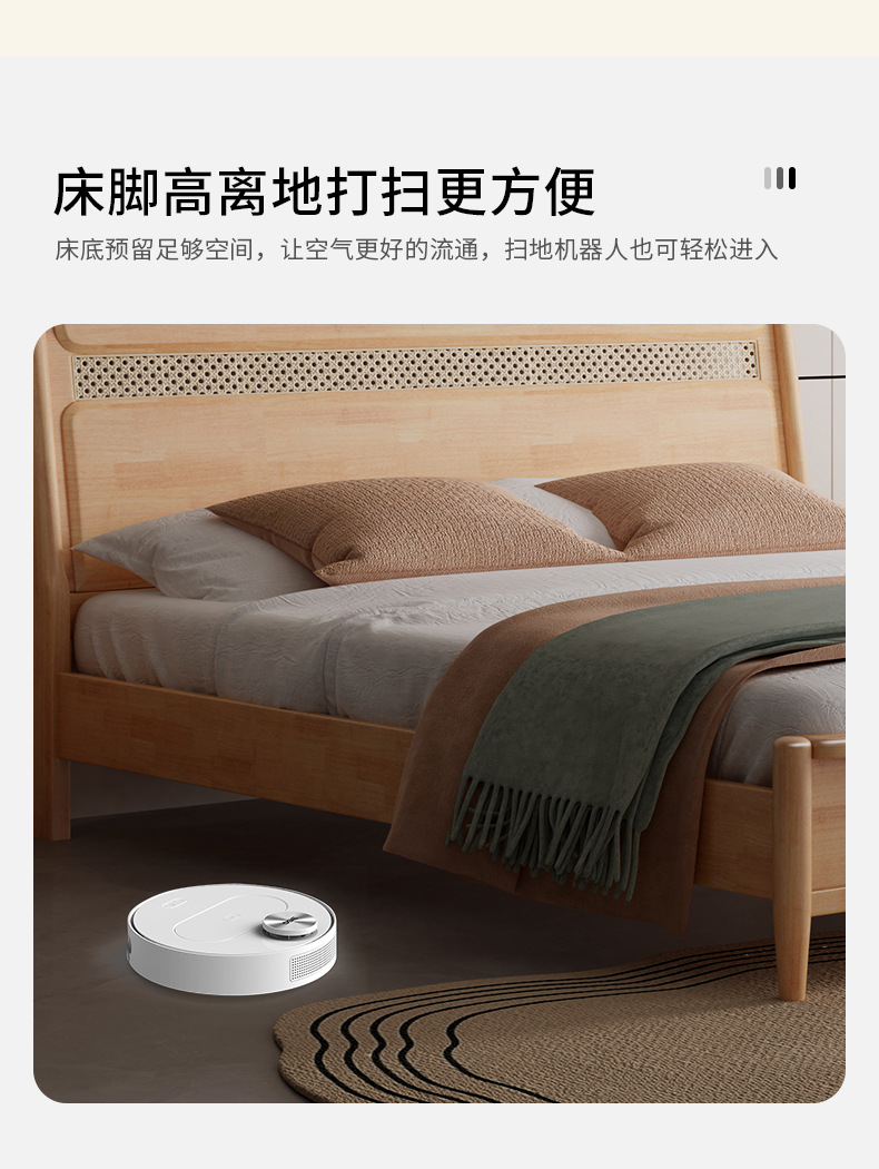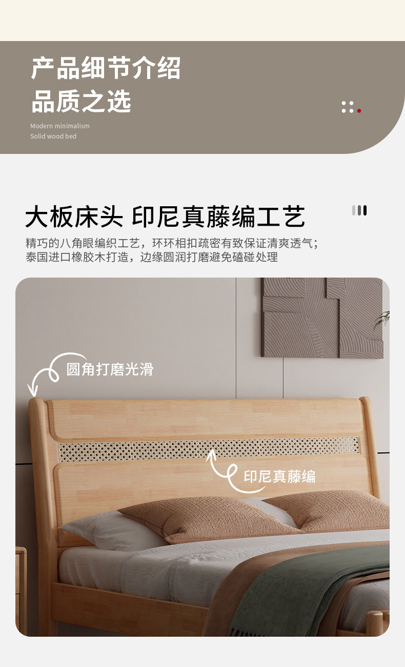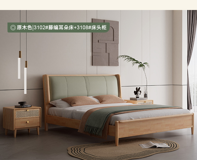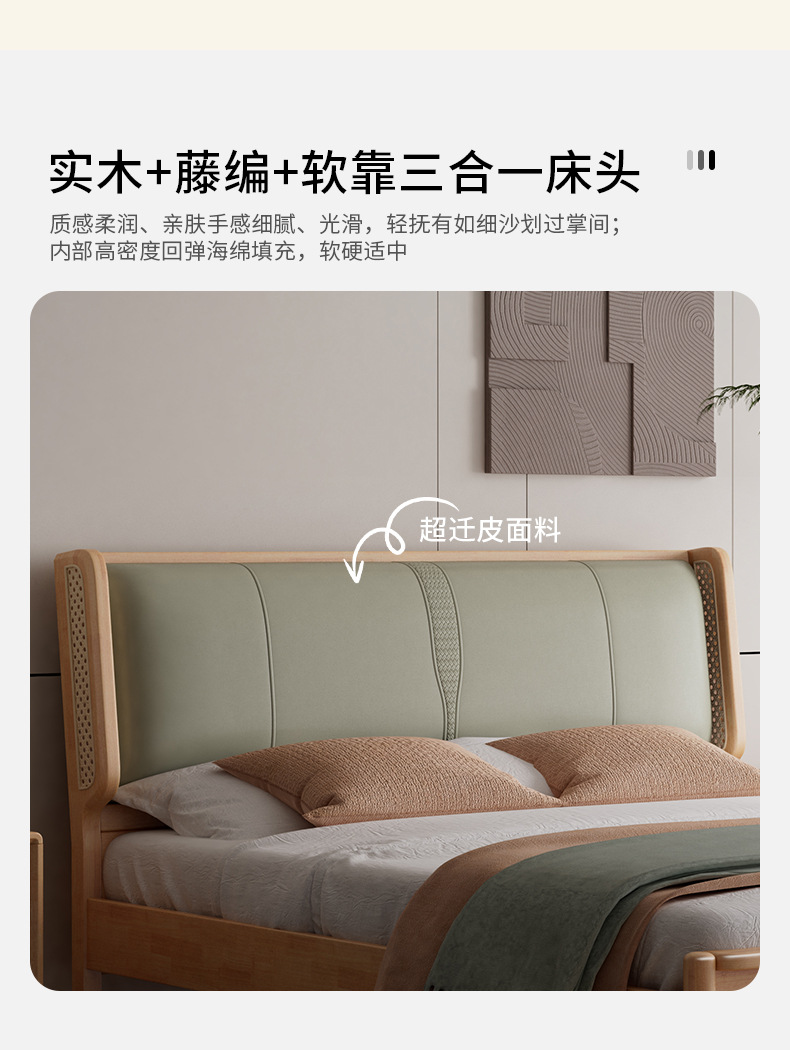 단단한 나무 침대 현대 간단한 1.8 미터 더블 침대 북유럽 일본식 조용한 바람 마스터 침실 1.5 미터 등나무 부드러운 침대스토어 가기