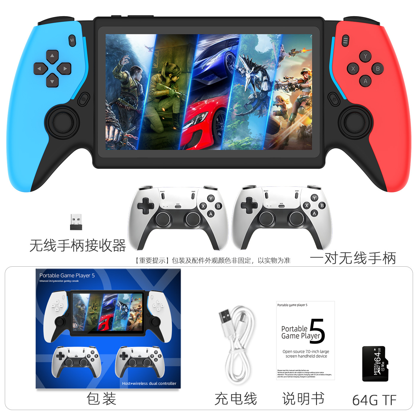• P5 7.0inch 오픈 소스 휴대용 콘솔(64G 파란색 및 빨간색) 더블