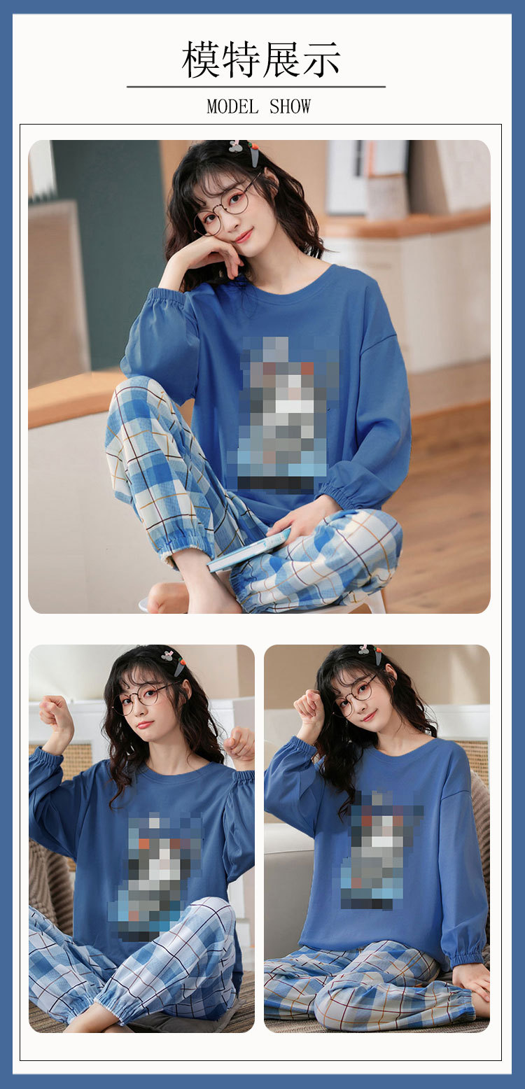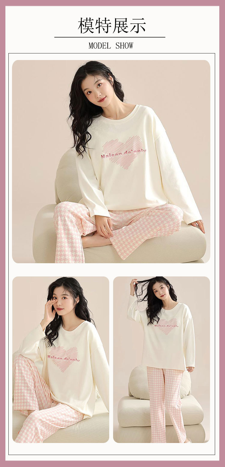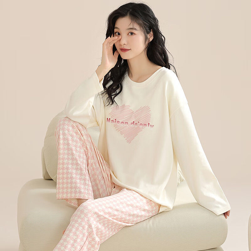 새로운 봄과 가을 잠옷 여성용 크루넥 긴팔 바지 심플한 캐주얼 고급 감각 가정복 세트 밖에서 입을 수 있음스토어 가기