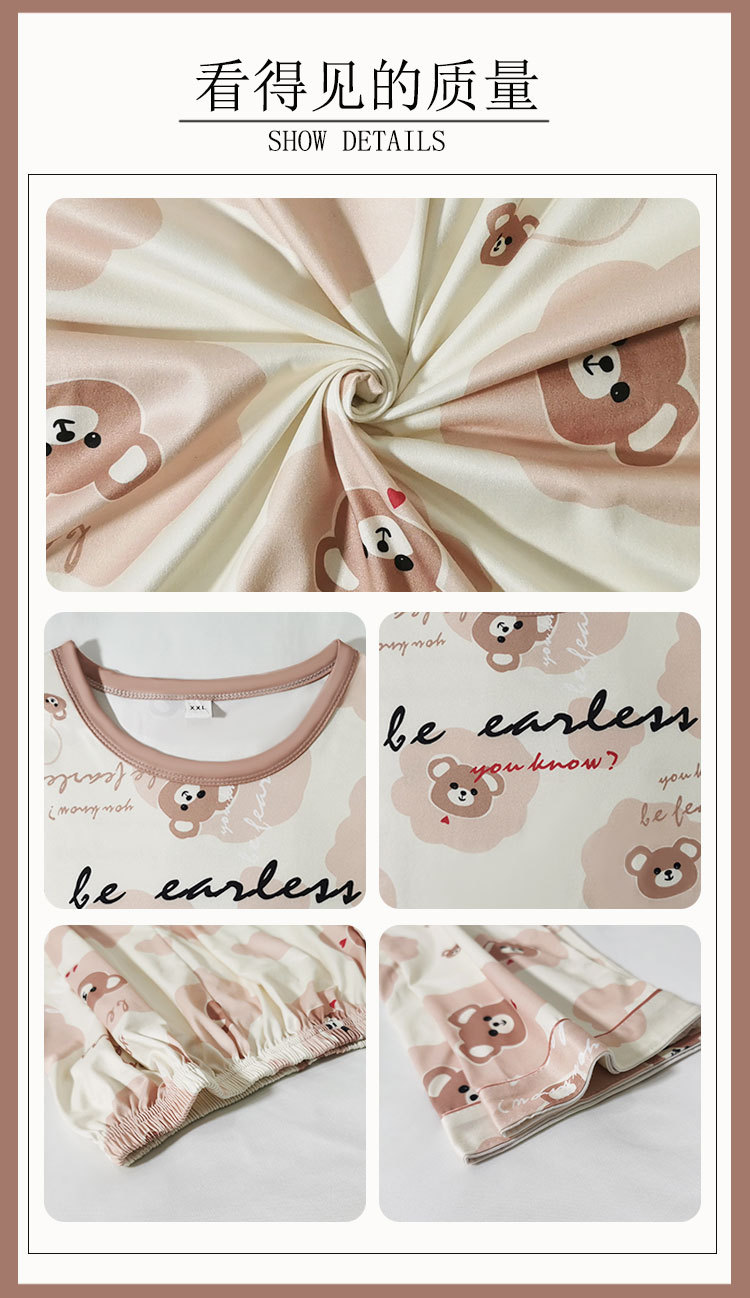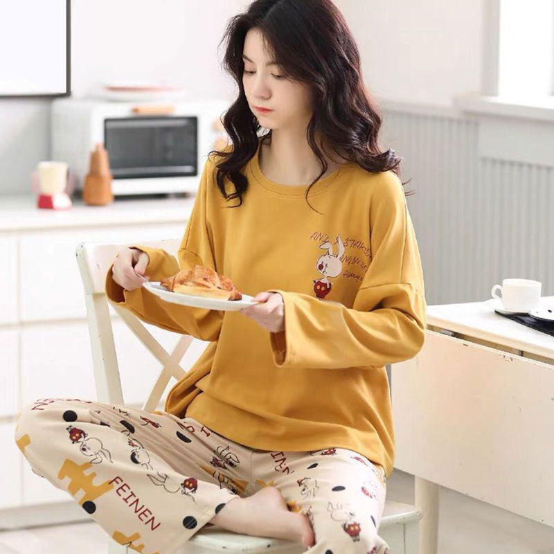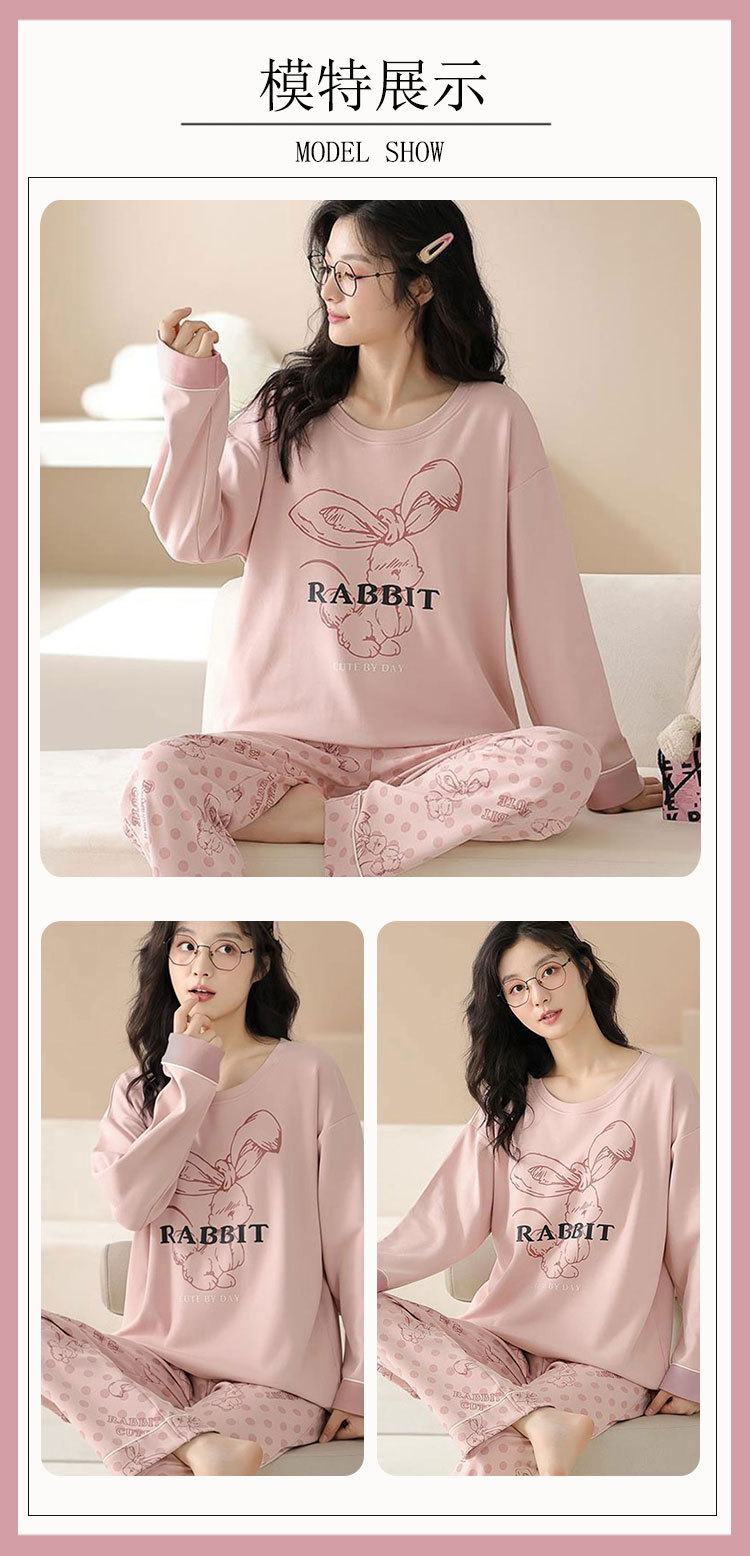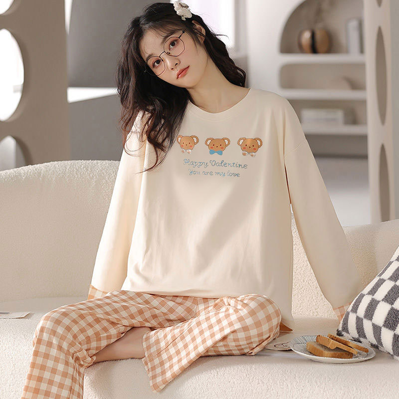 새로운 봄과 가을 잠옷 여성용 크루넥 긴팔 바지 심플한 캐주얼 고급 감각 가정복 세트 밖에서 입을 수 있음스토어 가기