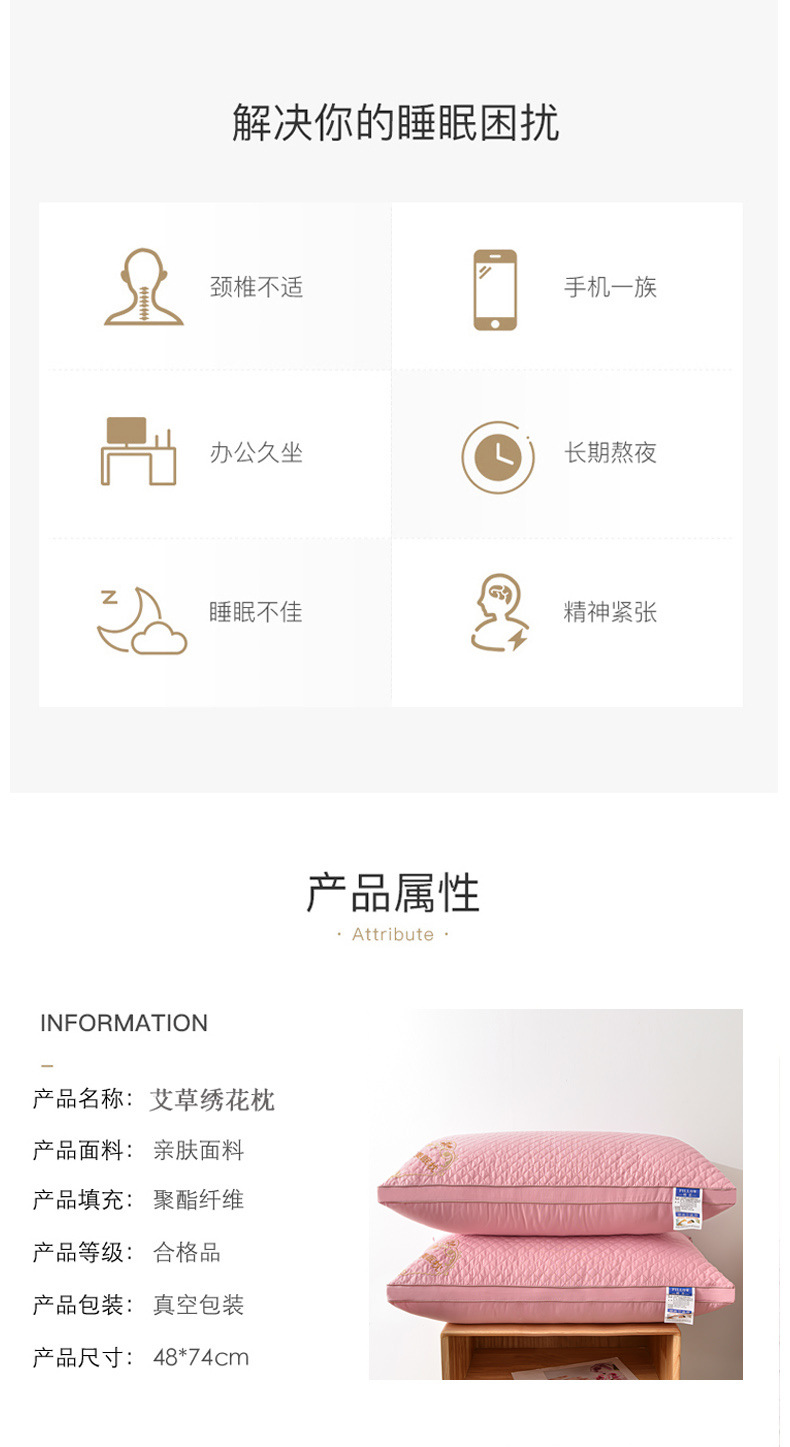 공장 도매 쑥 자수 베개 성인 가정 수면 베개 베개 코어 무너지지 않습니다 단일 베개 학생 기숙사스토어 가기