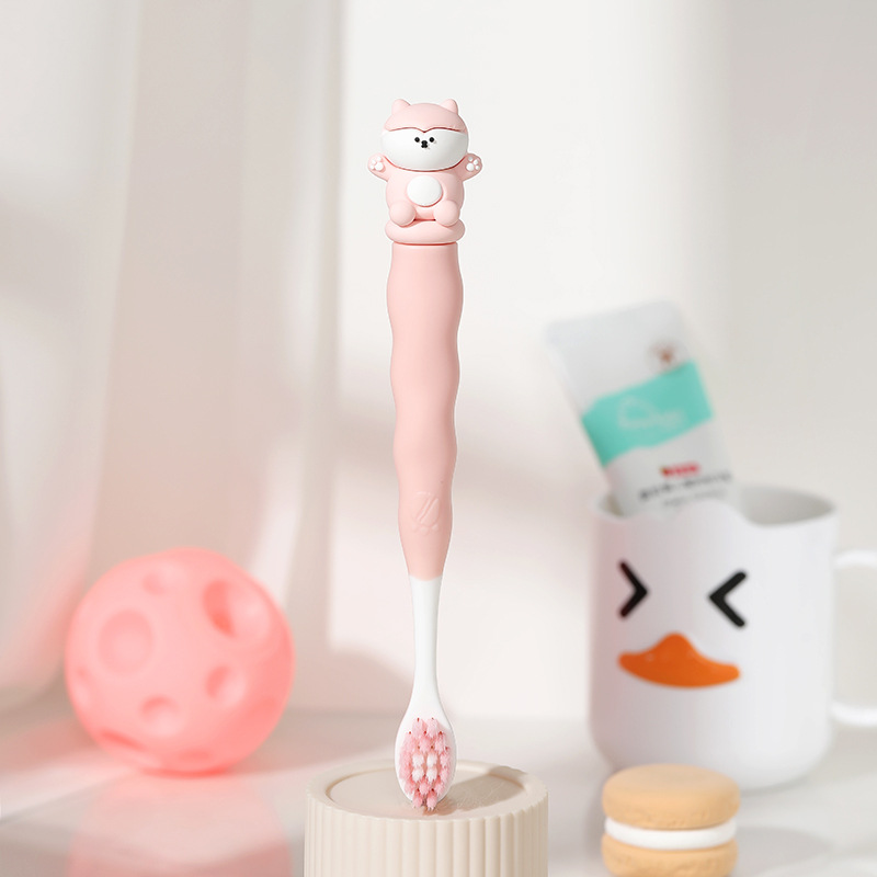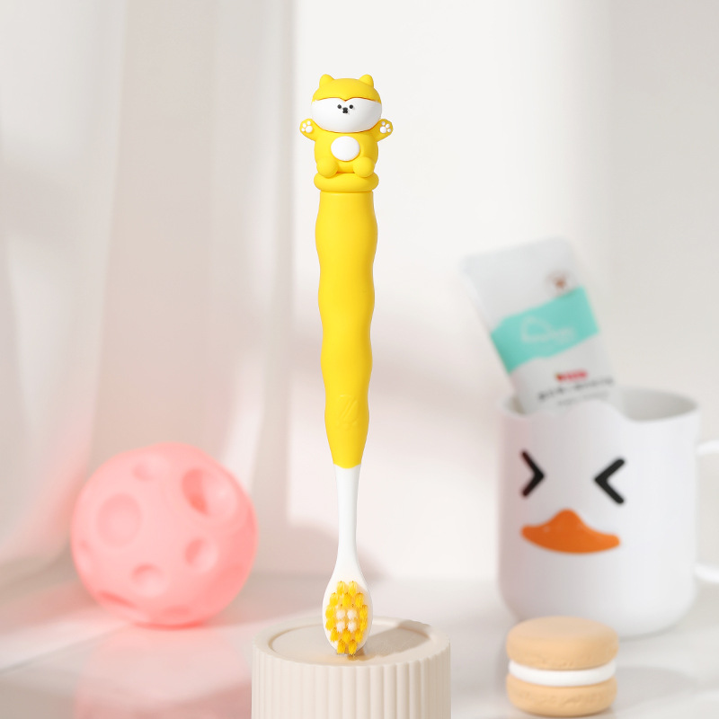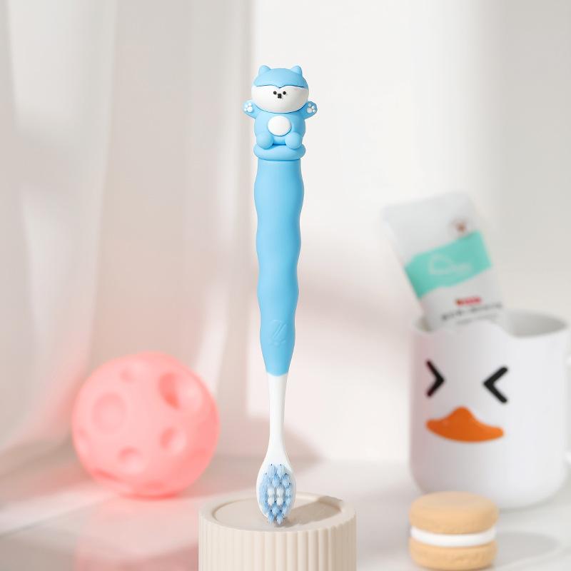 만화 어린이 칫솔 단일 팩 3-12 세 창조적 인 실리콘 핸들 아기 초미세 부드러운 칫솔 제조 업체 도매