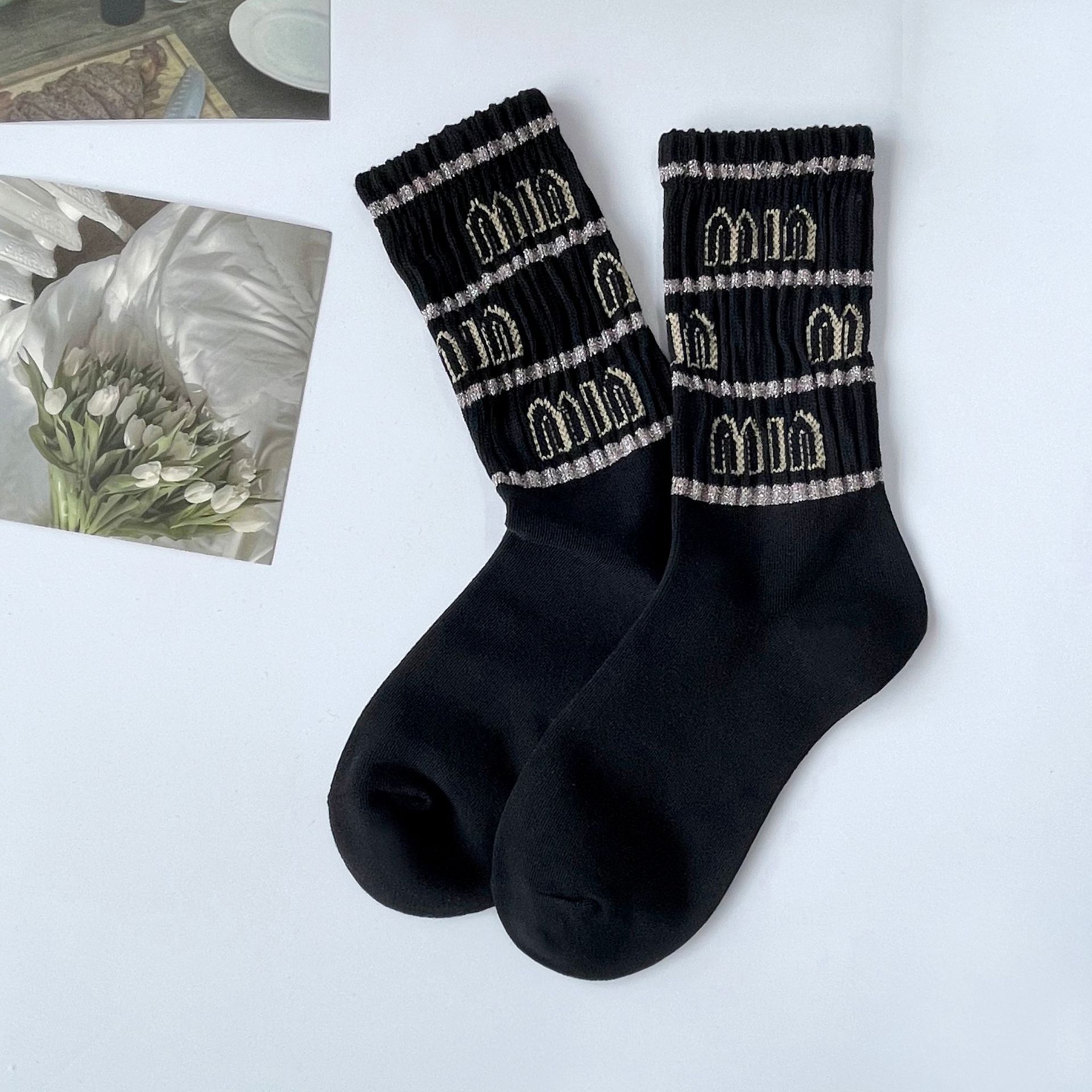 Ziyang 가을과 겨울 새로운 여성 양말 만화 곰 양말 아카데미 스타일 INS 유행 양말 사이버 연예인 더미 양말 검은 면 양말
